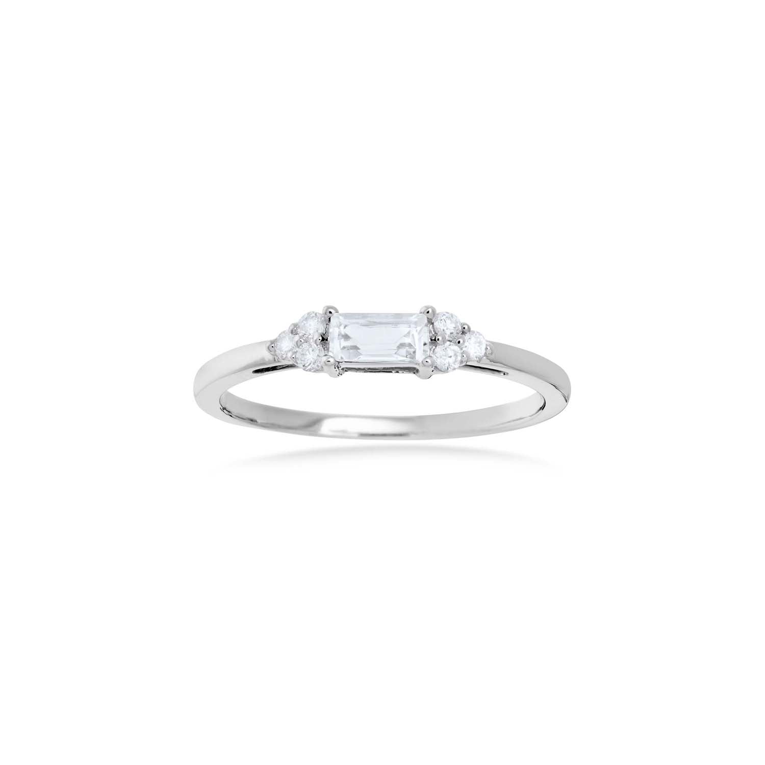 Aveny COLLECTION - Ring m. baquette Morganit og brillanter, 0,11 ct. w/si - 14 kt. hvidguld