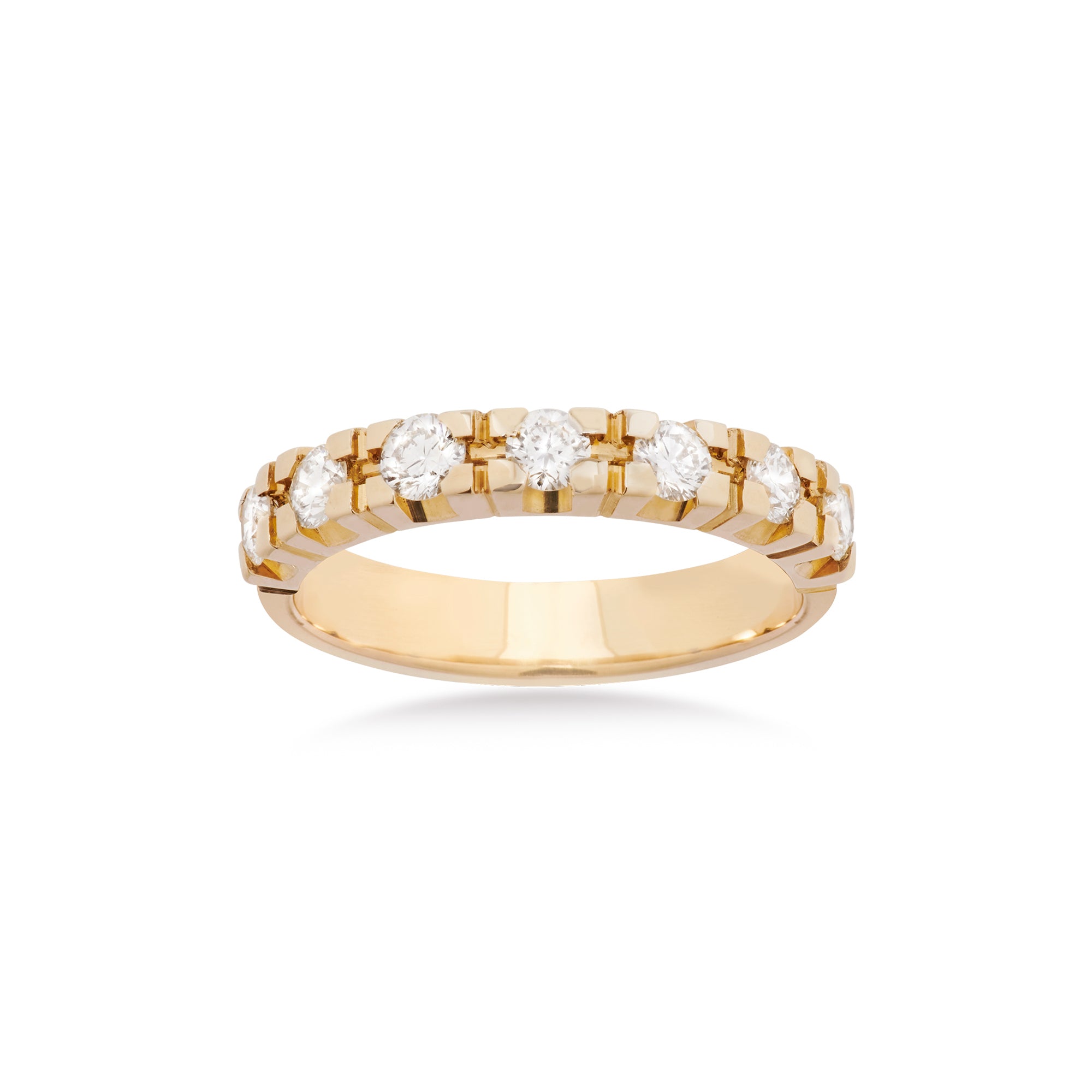 Oplev tidløs elegance med Aveny ALLIANCE allianceringen, der kombinerer luksus og håndværk i en smuk symfoni. Denne ring er skabt af 14 karat guld og prydet med syv funklende diamanter, hver på 0,10 ct. w/vs, der tilføjer en strålende glans til dit look. Perfekt til at markere særlige øjeblikke eller som en daglig påmindelse om skønhed og elegance.