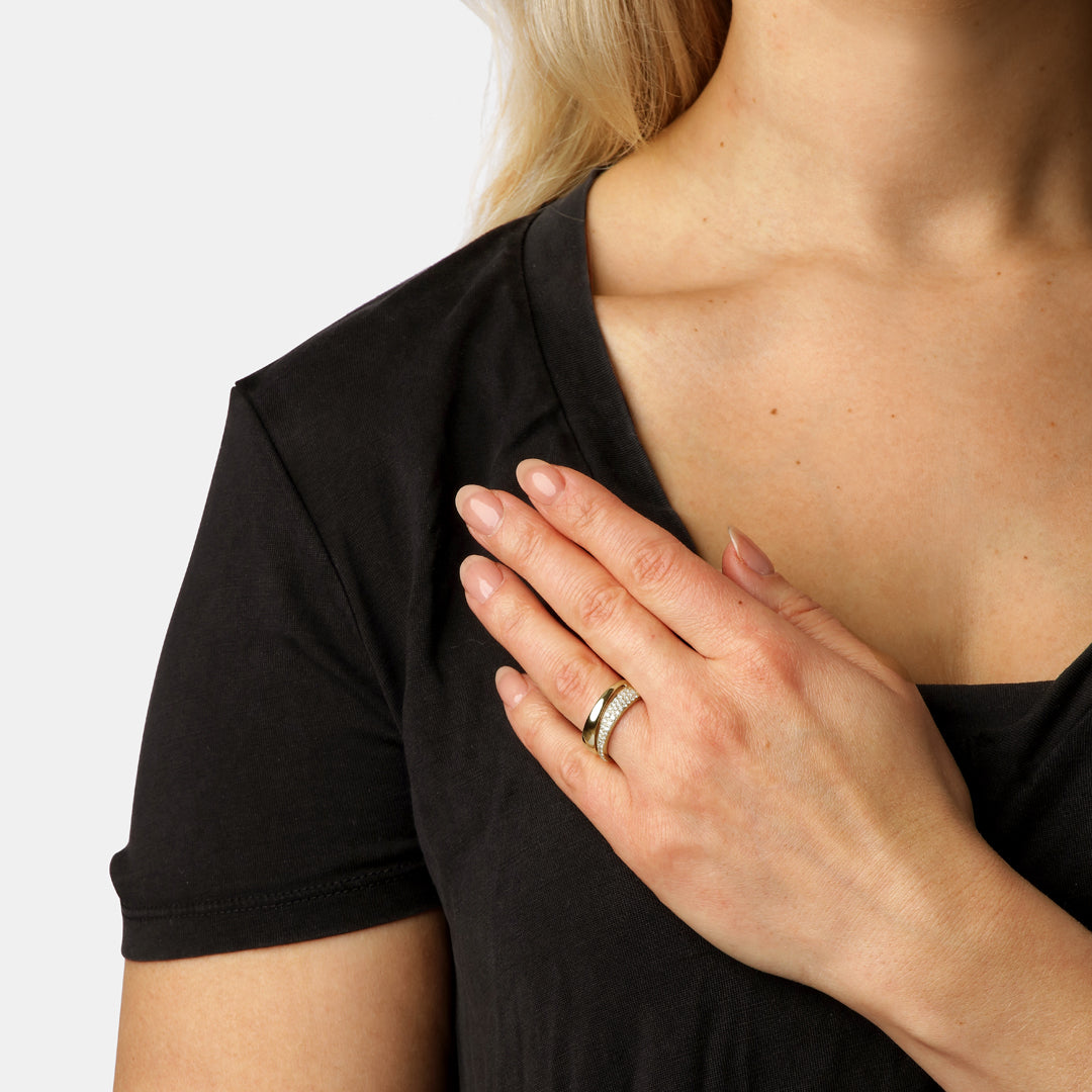 Med Aveny LUXURY's brede ring med pavé får du et smykke, der ikke blot er en fryd for øjet, men også en investering i kvalitet og stil. Lad denne ring være det skinnende midtpunkt i din smykkesamling.