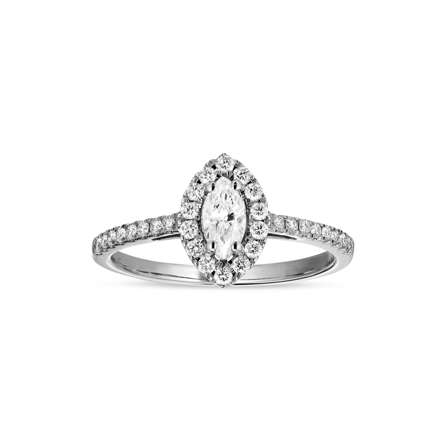 Aveny LUXURY - Marquise halo ring, 0,50 w/si - 14 kt. hvidguld