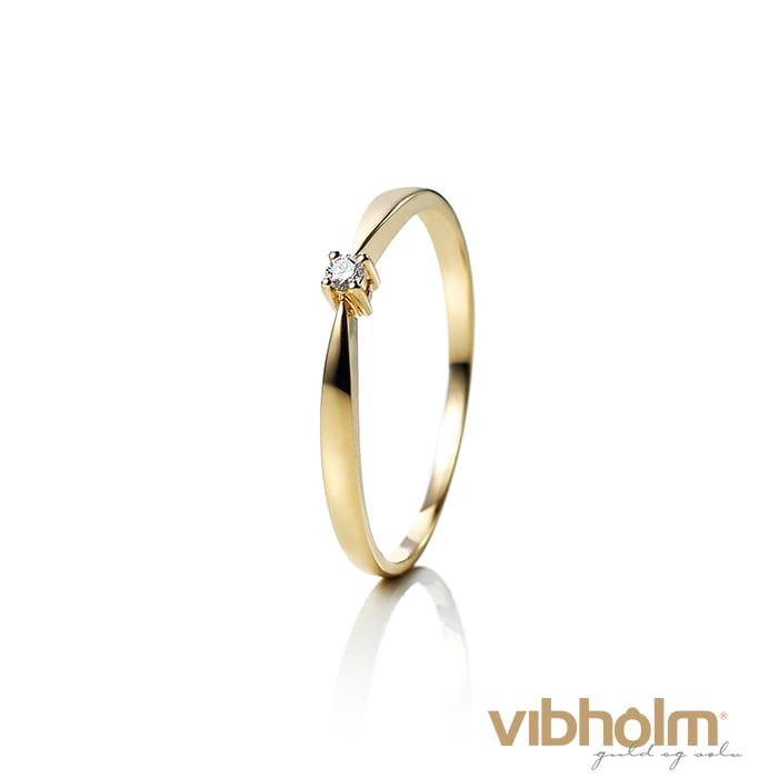 Med en subtil, men strålende diamant, er denne ring designet til at fange lyset og opmærksomheden. Den er ideel til både hverdag og særlige lejligheder, hvor den kan bæres alene eller kombineres med andre smykker for et mere personligt udtryk.