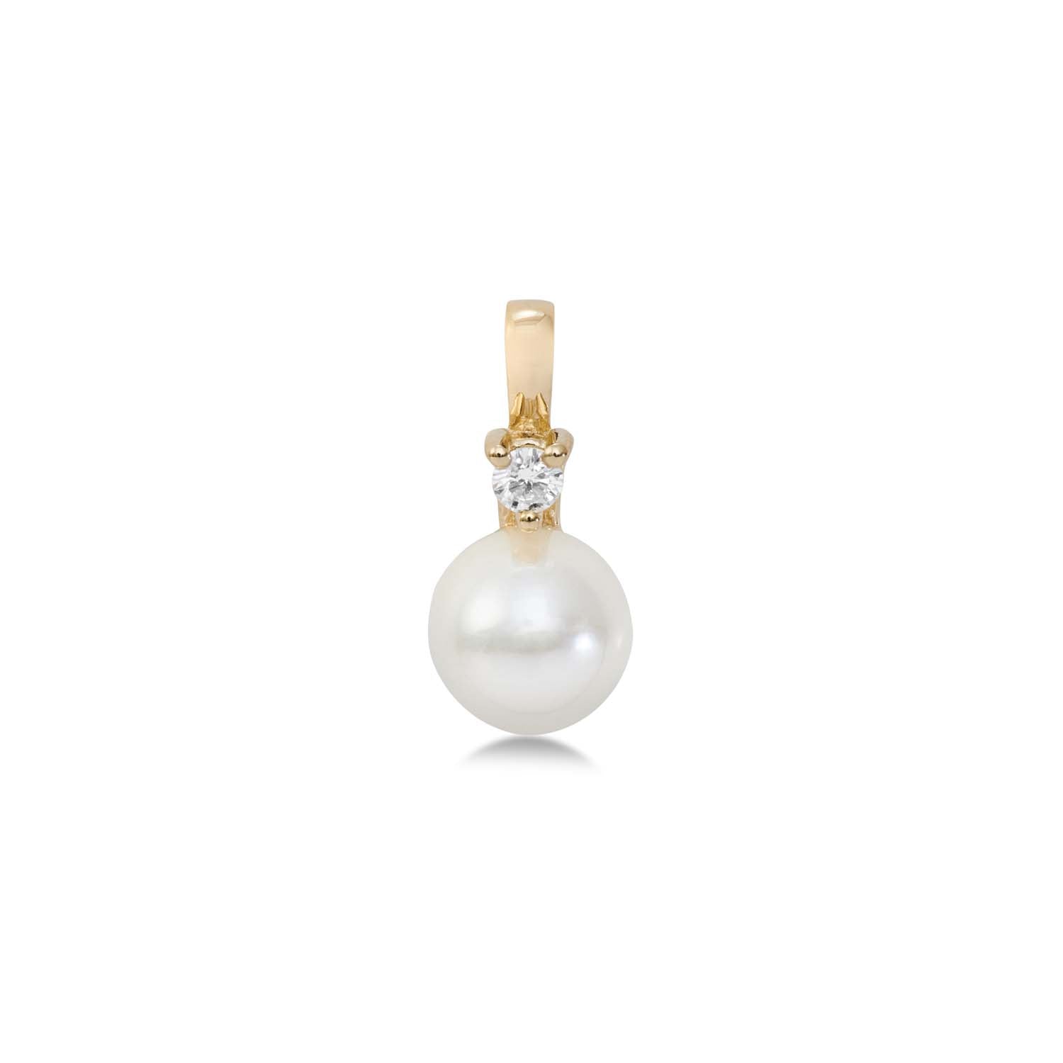 Aveny COLLECTION - Vedhæng m. kulturperle, 7-7,5 mm, 0,05 ct. w/si - 14 kt. guld