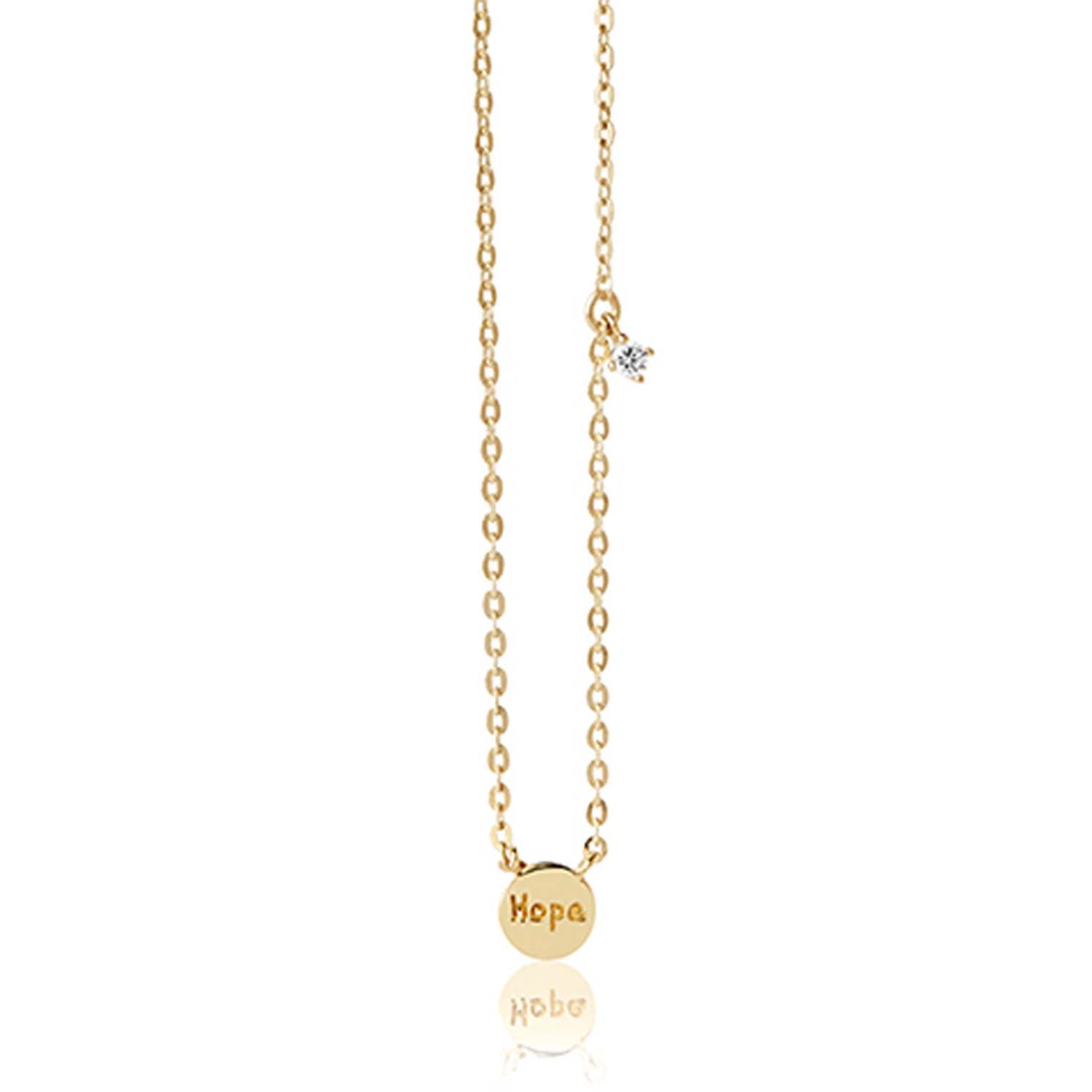 Aveny COLLECTION - Collier m. HOPE plade, zirkonia/40 cm - 9 kt. guld