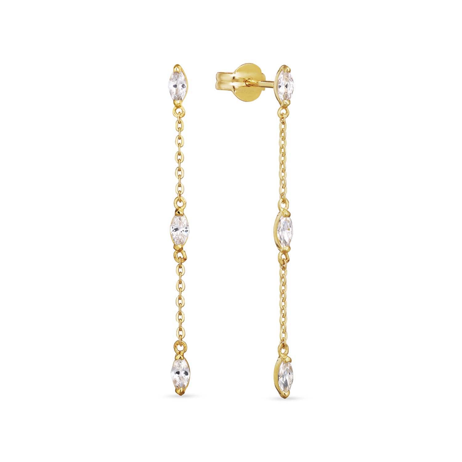 Aveny COLLECTION - Øreringe m. kæde, 2x4mm zirkonia - 8 kt. guld