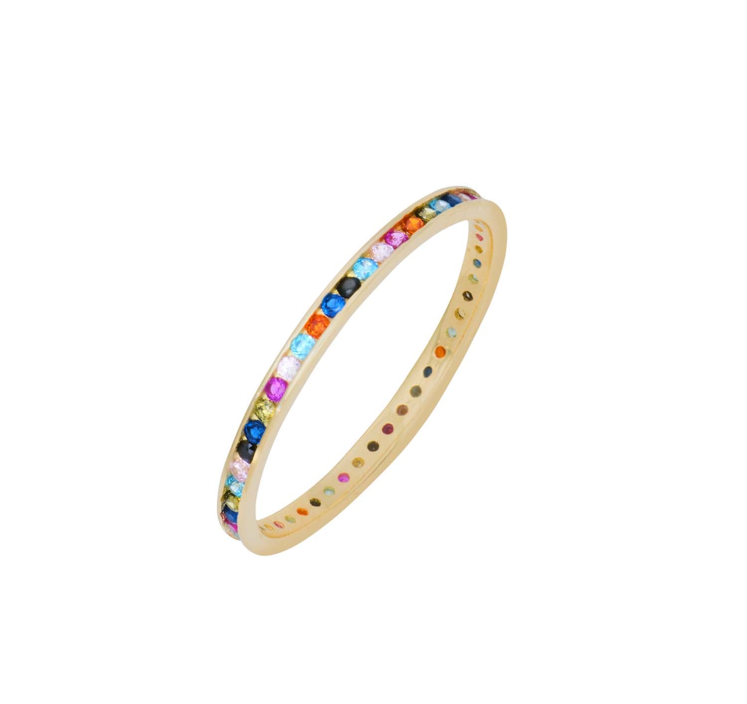 Aveny COLLECTION - Smal alliancering, multi color zirkonia - 8 kt. guld
