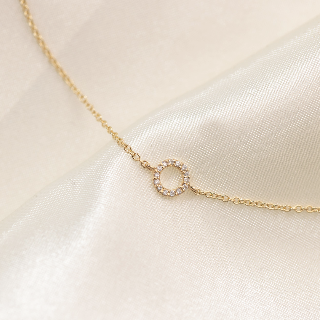 Oplev tidløs elegance med Aveny LUXURY Circle Armbåndet. Dette smykke er skabt i 14 karat guld og prydet med funklende diamanter på i alt 0,05ct. Det delikate design kombinerer luksus og enkelhed, hvilket gør det til et perfekt valg til enhver lejlighed.