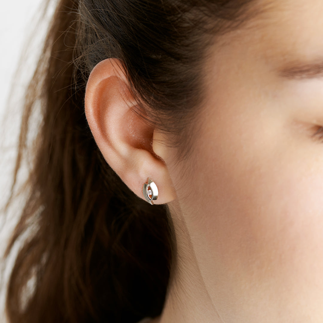 Disse ørestikker er en del af Diamond Collection, kendt for deres udsøgte håndværk og opmærksomhed på detaljer. På billedet kan du se det skinnende metal, der reflekterer lyset smukt, og den delikate indfatning, der holder stenen sikkert på plads. Den minimalistiske form giver et moderne udtryk, mens den subtile glans tilføjer en luksuriøs følelse.