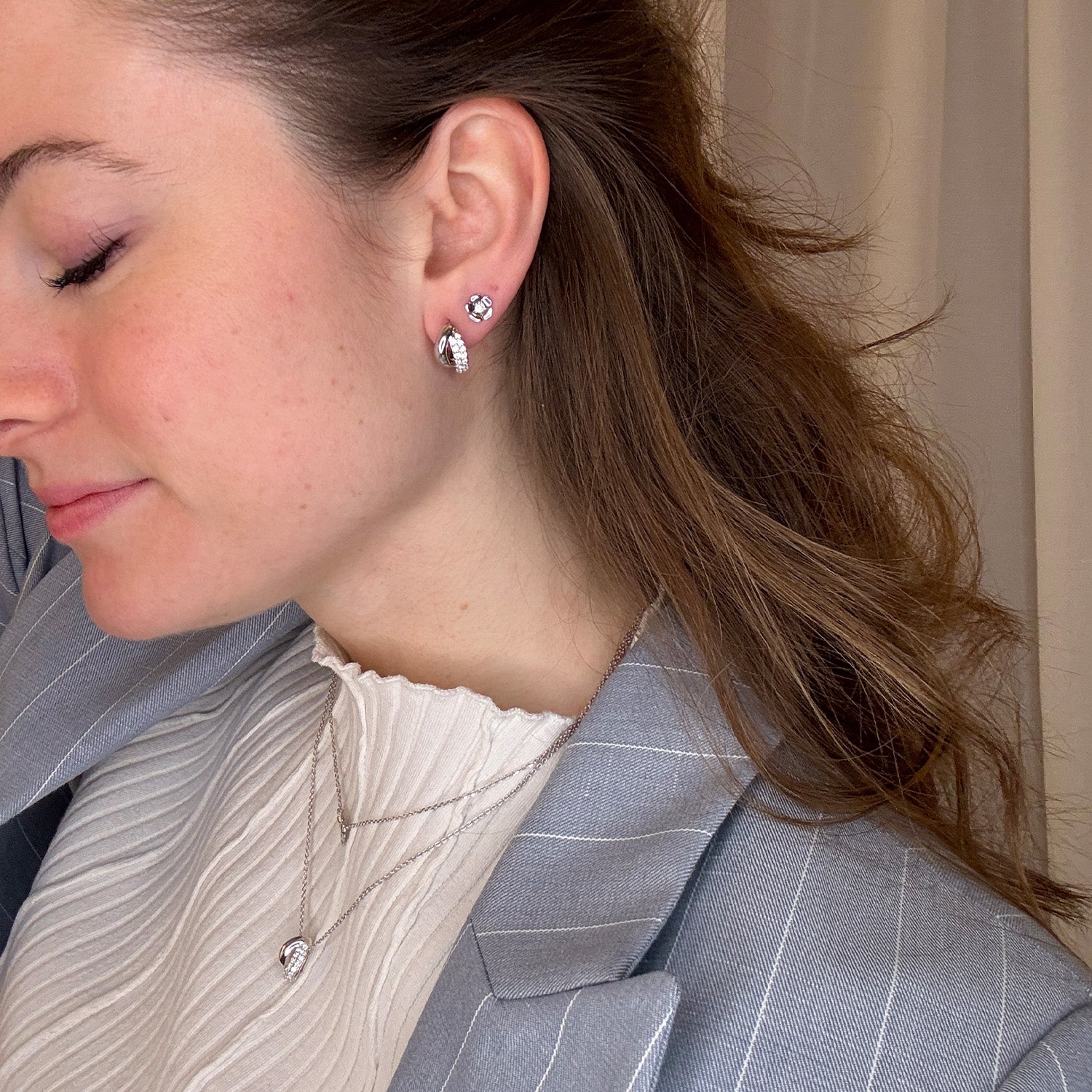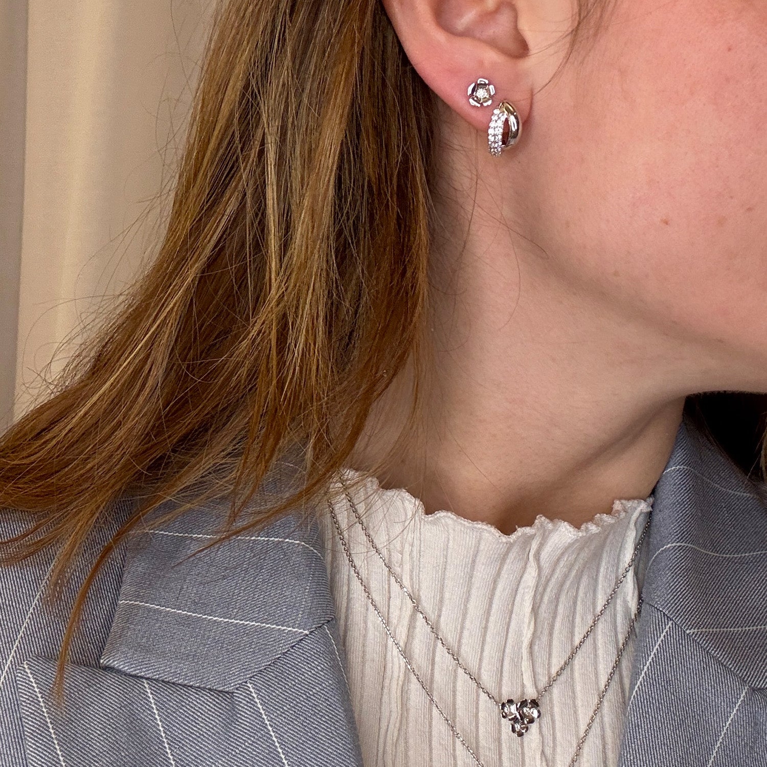 Mads.Z - Fleur ørestikker m. én blomst, hvid topas - Sølv
