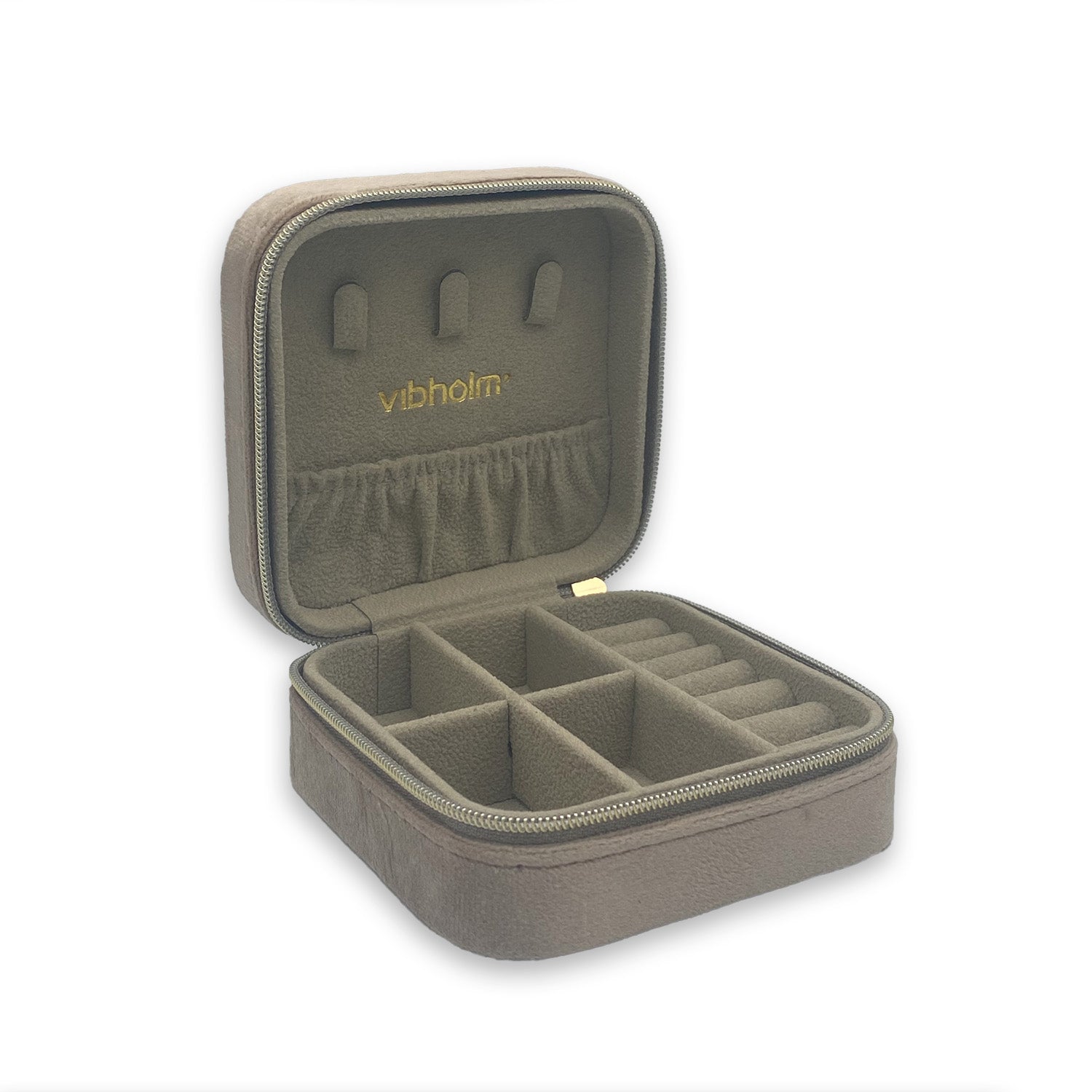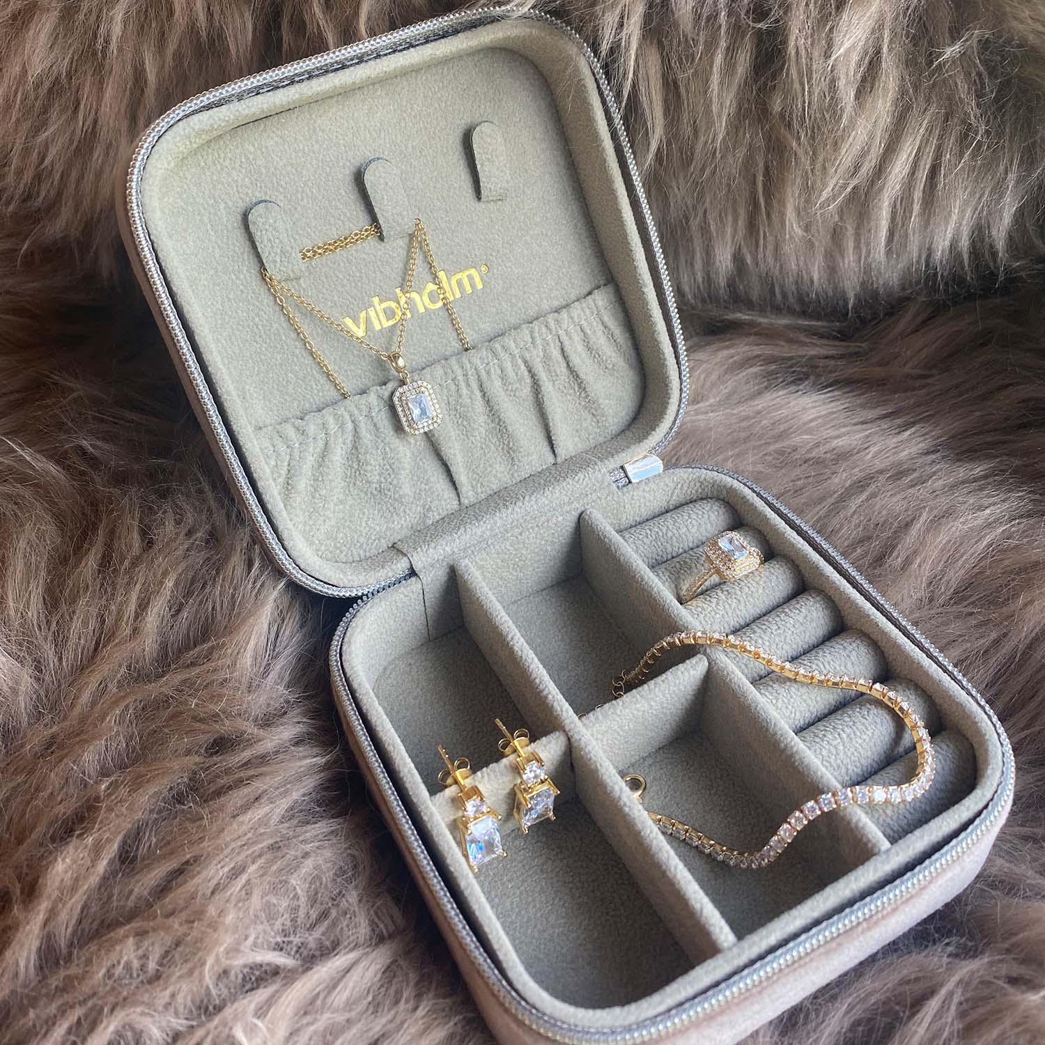 Smykkeskrin i taupe tekstil