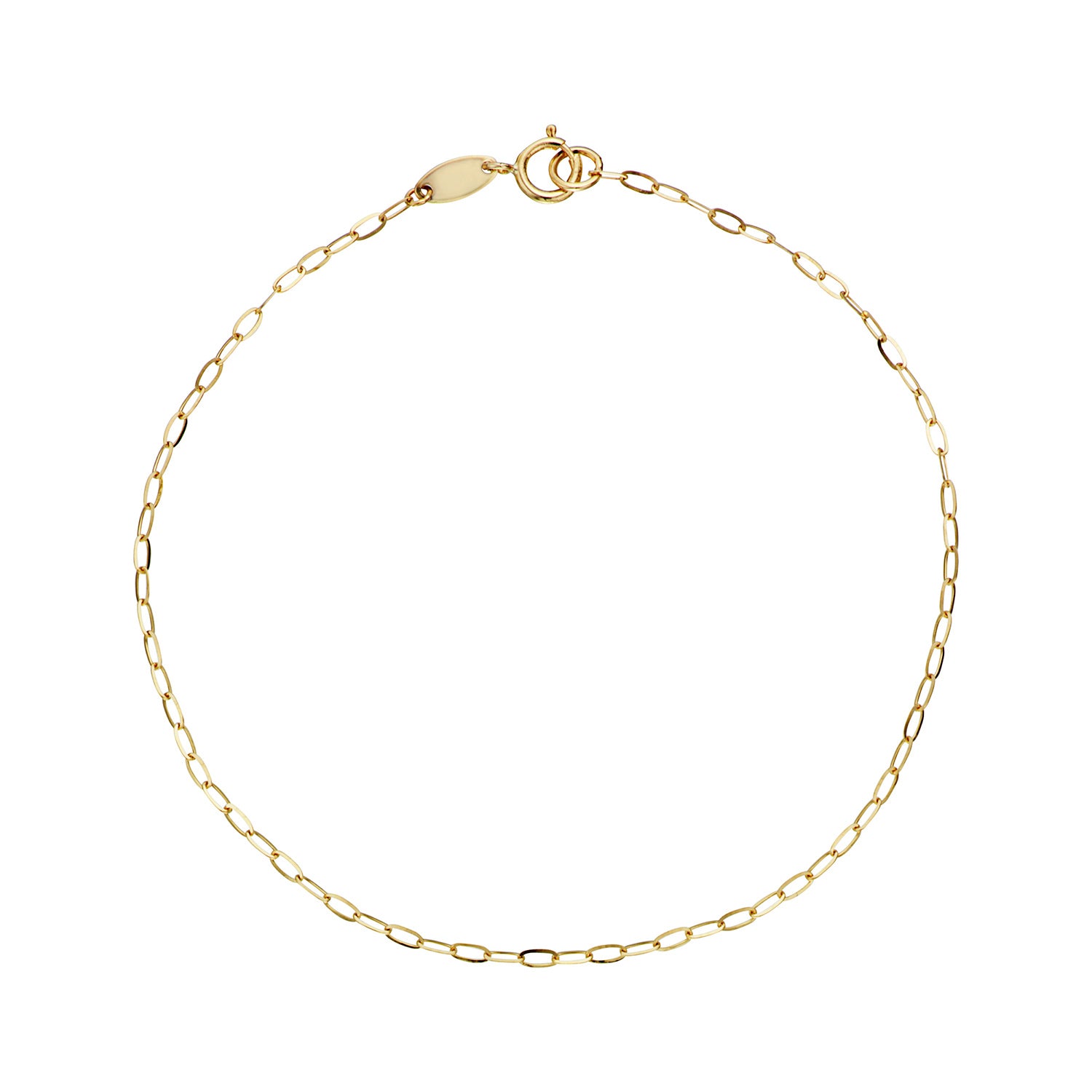Armbåndet er udført i en delikat kæde, der fremhæver dets raffinerede udtryk. Den gyldne nuance skinner blidt og tilføjer et strejf af luksus til dit look. Med sin fine struktur og glatte overflade føles det behageligt mod huden, hvilket gør det ideelt til daglig brug.