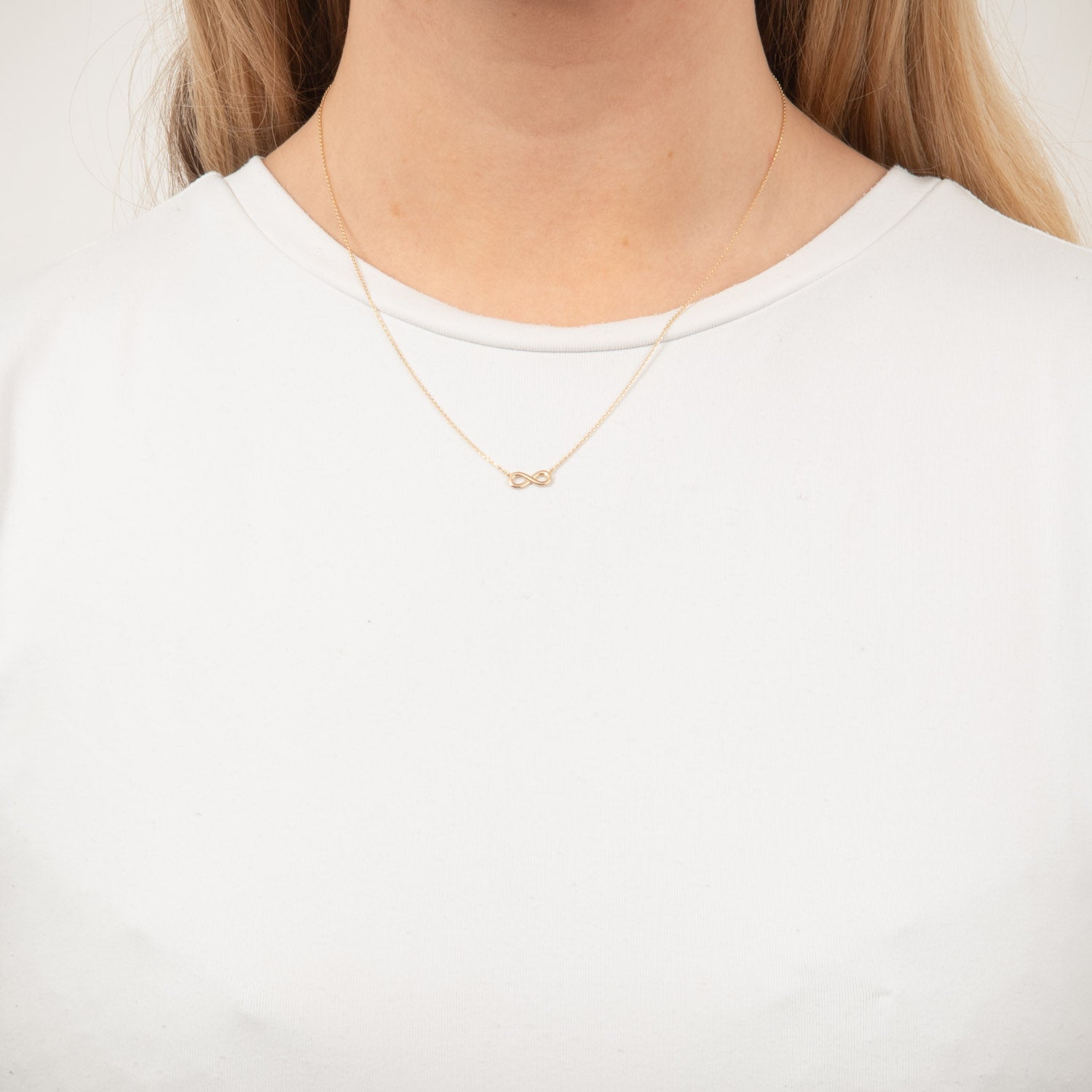 Halskæden er udført i en varm guldfarve, der tilføjer et strejf af luksus til dit look. Det delikate evighedstegn er både stilfuldt og meningsfuldt, hvilket gør det til en perfekt gave til en elsket eller som en forkælelse til dig selv.