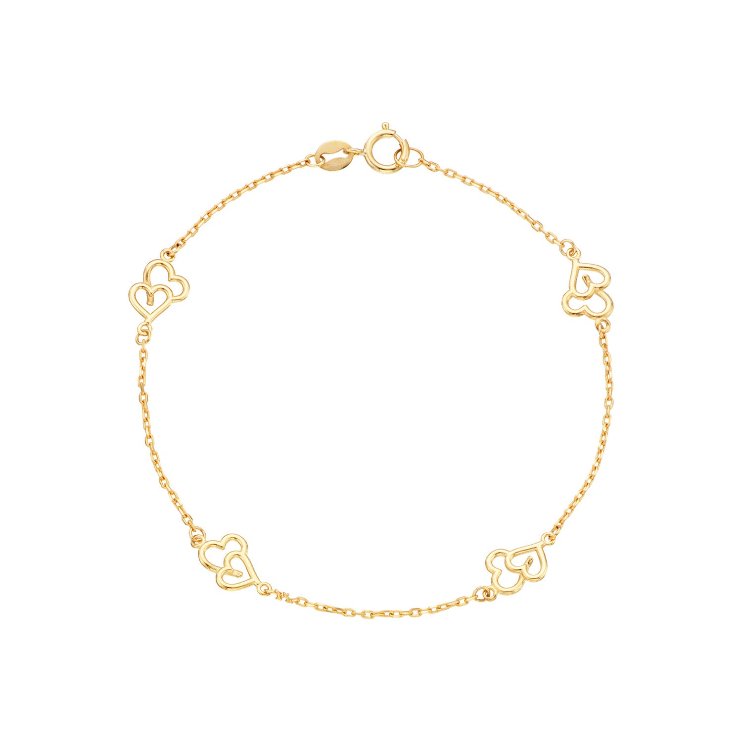 Armbåndet er udført i en smuk guldfarve, der stråler med en varm glød. De indarbejdede hjerteelementer giver en subtil, men iøjnefaldende detalje, der fanger lyset på en betagende måde. Den fine kæde er både stærk og delikat, hvilket gør den perfekt til daglig brug eller som et særligt smykke til festlige lejligheder.