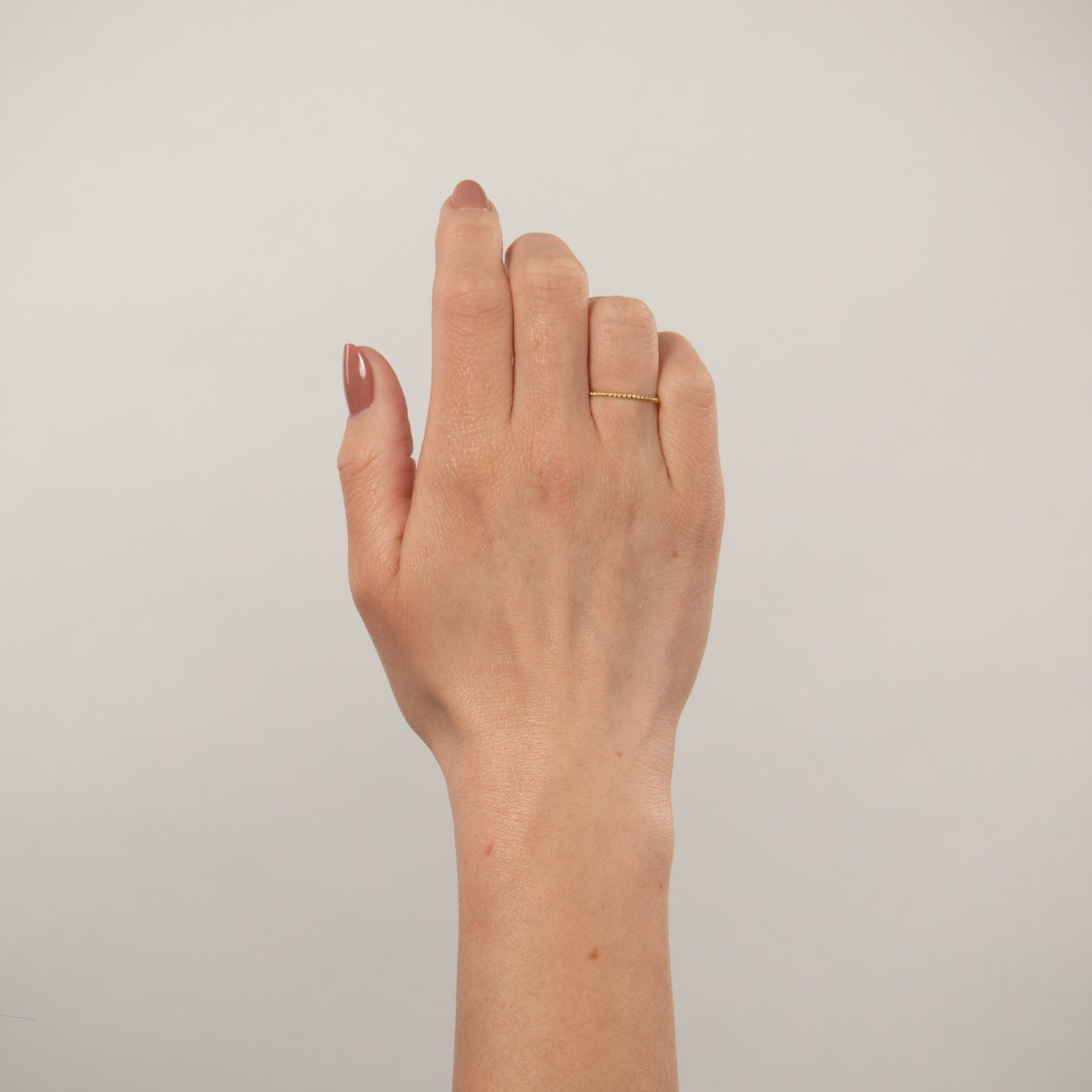 Ringen er et vidnesbyrd om håndværkets kunst, hvor hver detalje er nøje overvejet for at skabe et smykke, der både er smukt og holdbart. Den varme glød fra 8 kt. guld tilføjer en subtil elegance, der komplementerer enhver stil.