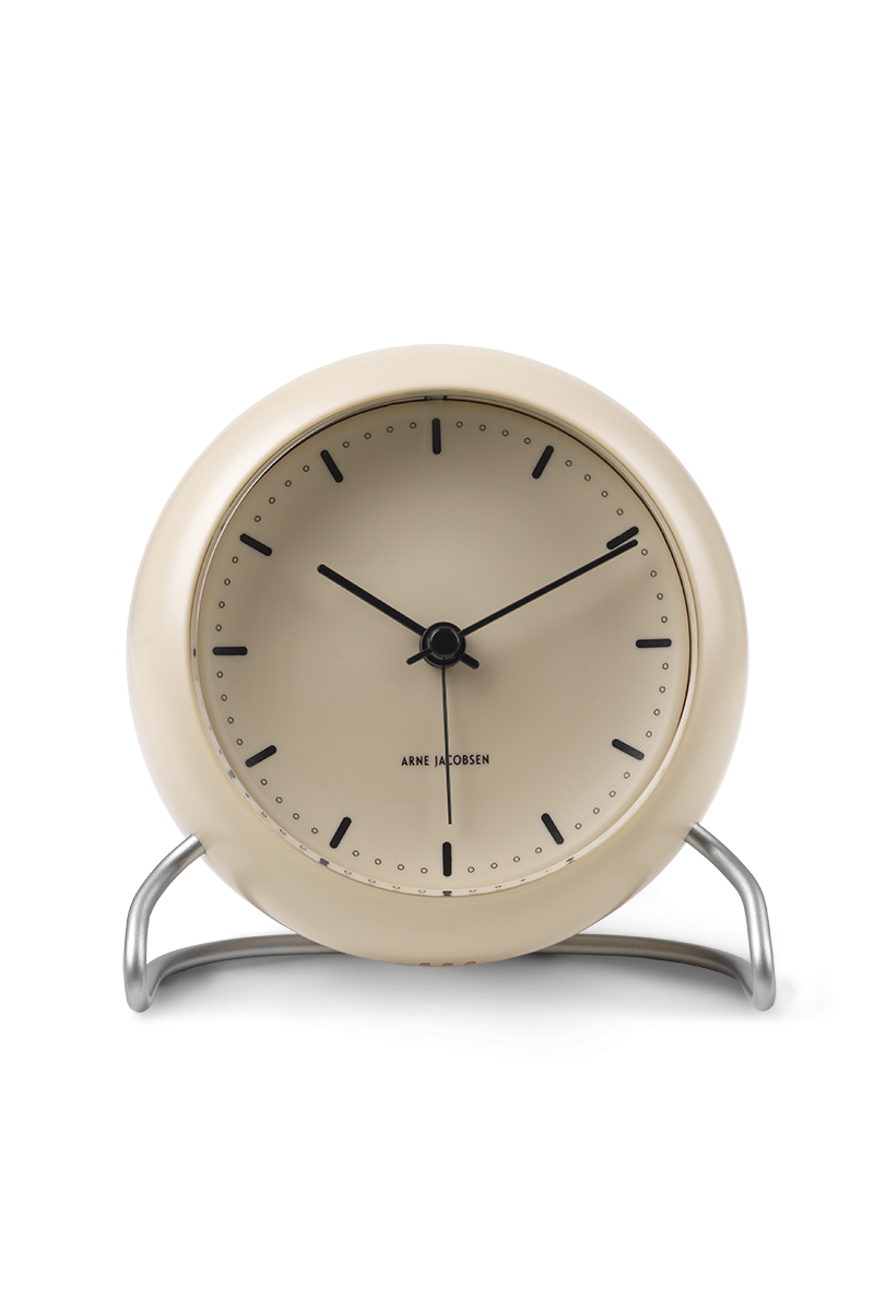 Urkasse: Mat sand plastik Fod: Rustfrit stål Funktioner: Alarm og LED lys Urskivefarve: Sand Mål: Ø 11 cm Vægt: 0,4 kg OBS! Uret bruger 2 stk. AA batterier. Batterier er ikke inkluderet.