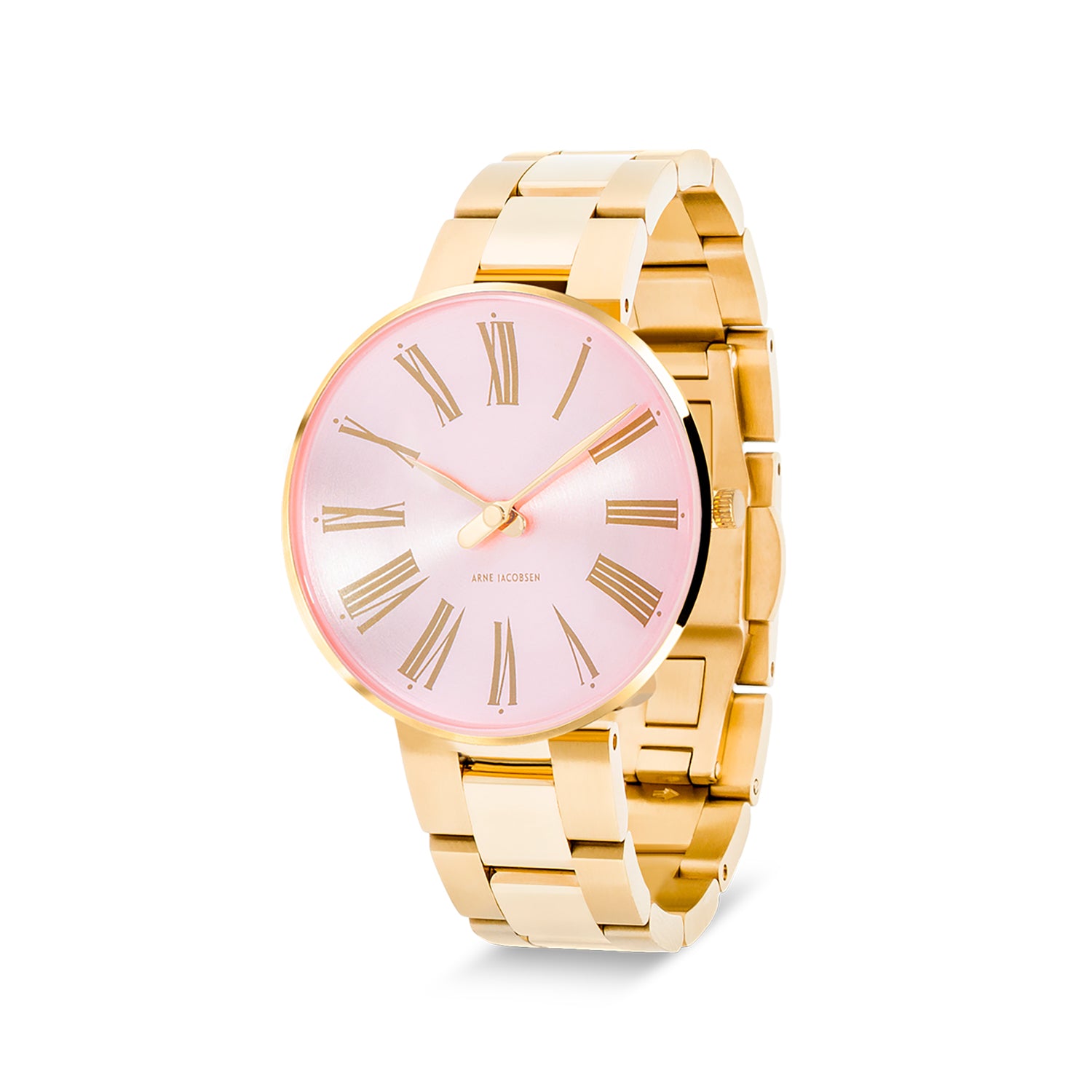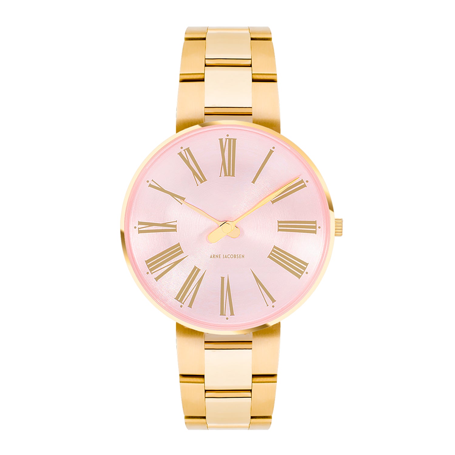 Arne Jacobsen - Roman Orchid Pink ur, 34 mm - guld IP/lænke