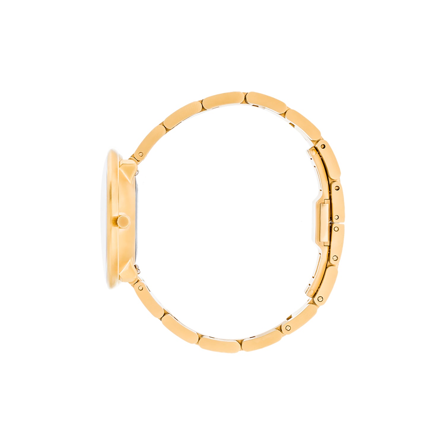 Uret er udført i guld IP med en smuk lænke, der giver et luksuriøst udtryk. Den bløde, rosa urskive med romertal tilføjer en subtil farve, der skiller sig ud uden at være overvældende. Den glatte overflade og de fine detaljer gør det til en fornøjelse at bære.