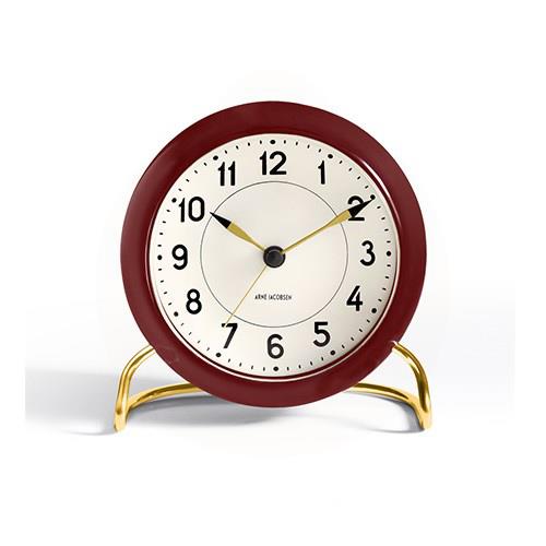 Dette bordur er en fryd for øjet med sin dybe røde ramme, der tilføjer et strejf af farve til ethvert rum. Den hvide urskive med sorte tal og visere skaber en skarp kontrast, der gør det nemt at aflæse tiden. Den gyldne base tilføjer et luksuriøst touch, der fremhæver urets raffinerede design.