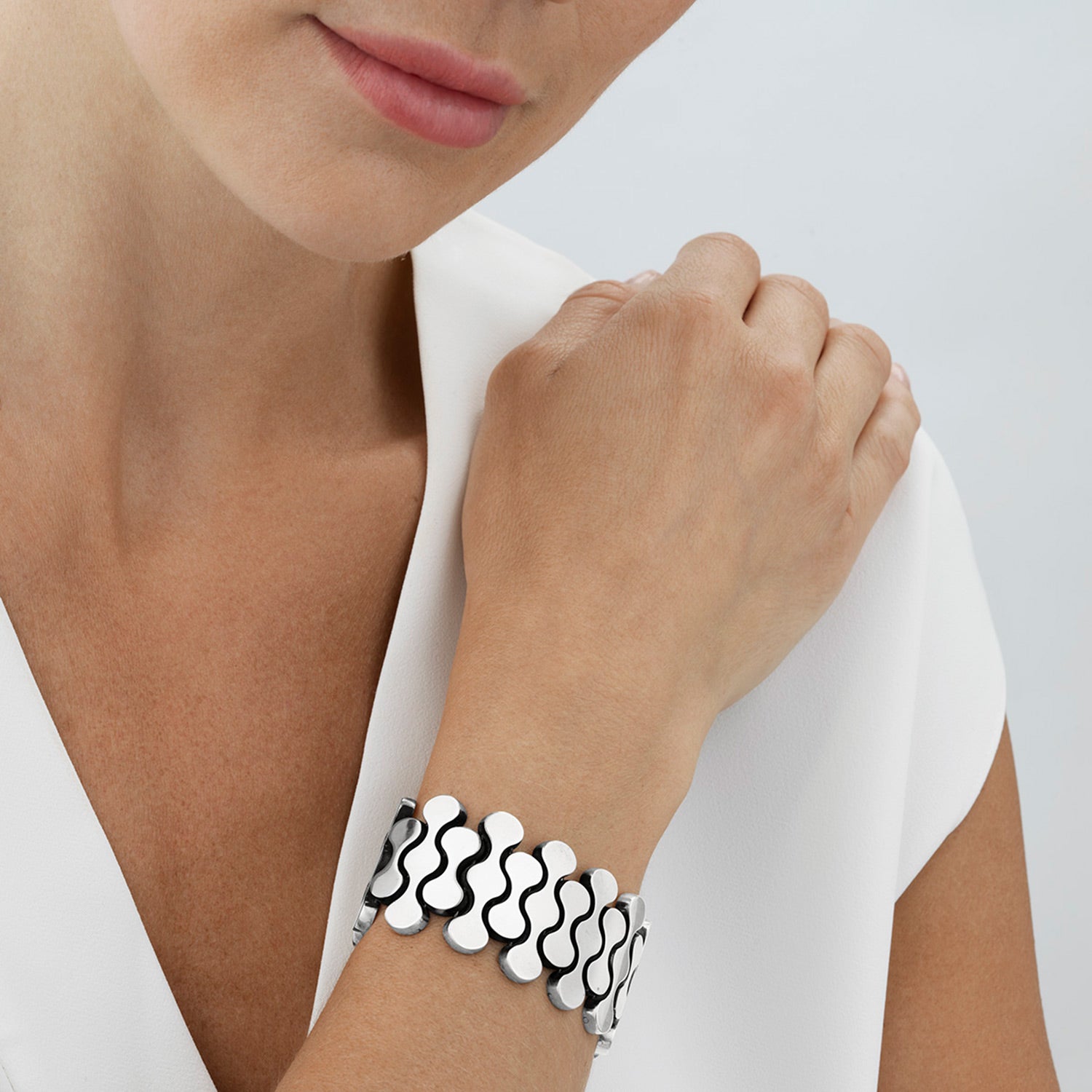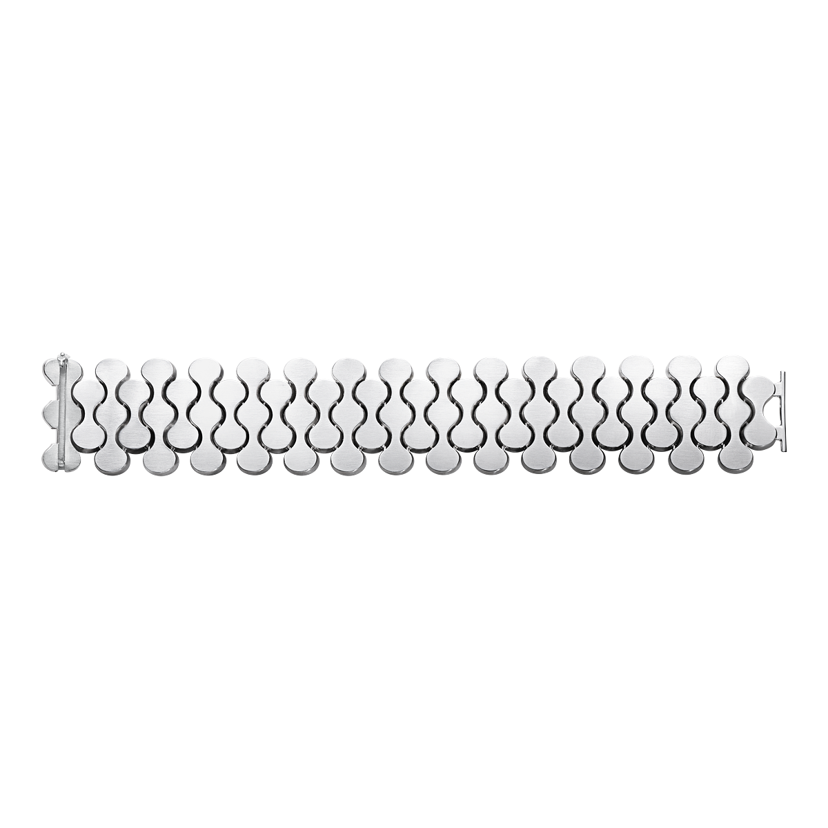 Georg Jensens Archive armbånd er en visuel fornøjelse med sit unikke mønster og glansfulde overflade. De sammenflettede led skaber en harmonisk balance mellem moderne og klassisk æstetik. Den skinnende finish reflekterer lyset smukt, hvilket giver armbåndet en levende og dynamisk udstråling.