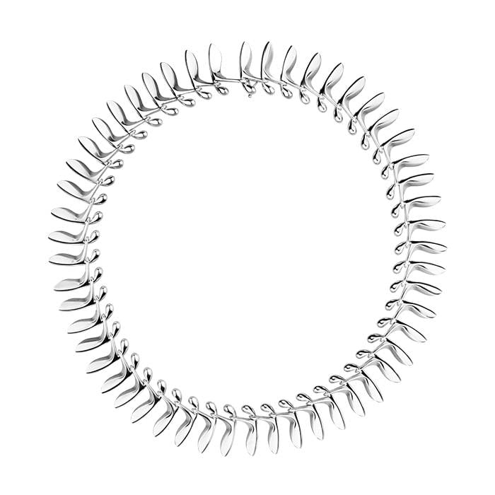 Halskæden er udført i skinnende sterlingsølv, der fanger lyset på smukkeste vis. De delikate, bladformede led giver et organisk og naturligt udtryk, som smyger sig elegant om halsen. Designet er både moderne og tidløst, hvilket gør det til et perfekt valg for dem, der ønsker at tilføje et sofistikeret touch til deres stil.