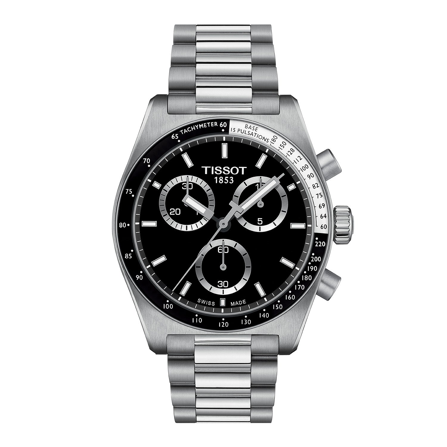 Fordele ved Tissot PR516 Chron:- Robust design med ridsefast safirglas