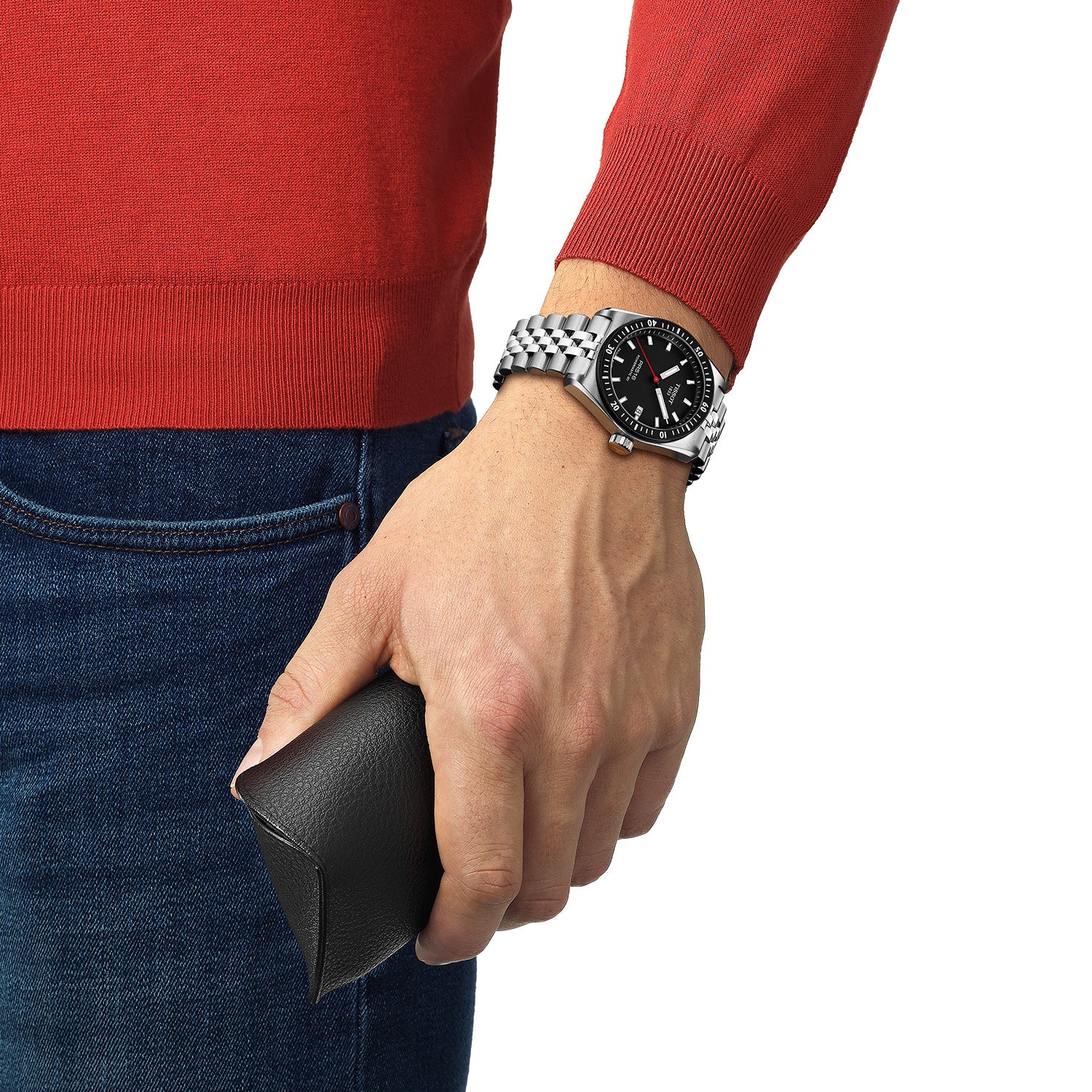 Designet af Tissot PR516 Powermatic er både robust og sofistikeret. Urets stålkasse og lænke giver en solid følelse, mens den sorte urskive med hvide markeringer skaber en skarp kontrast, der gør det let at aflæse tiden. Den røde sekundviser tilføjer et strejf af dynamik til det ellers klassiske design.