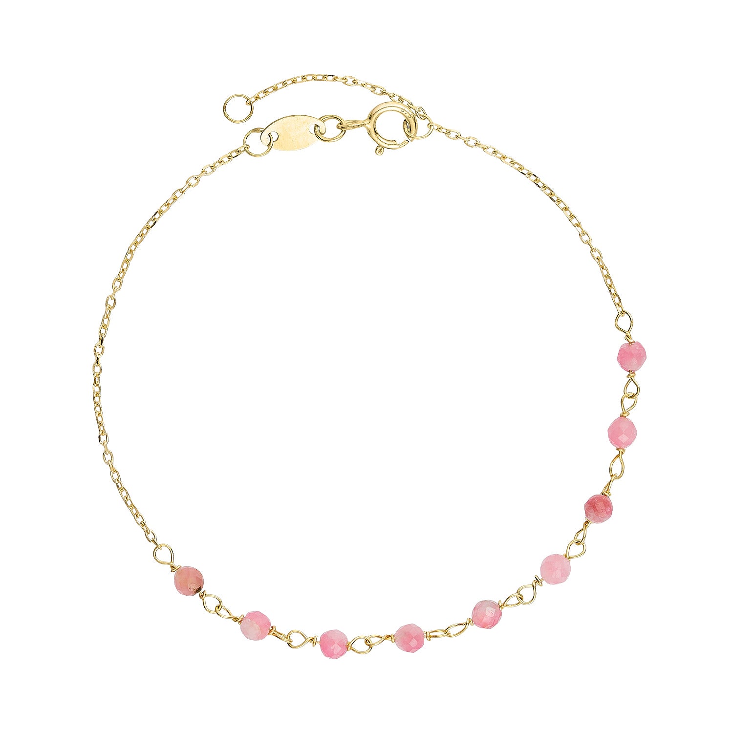 Aveny NINE K - Armbånd m. pink turmalin, 16+2 cm - 9 kt. guld
