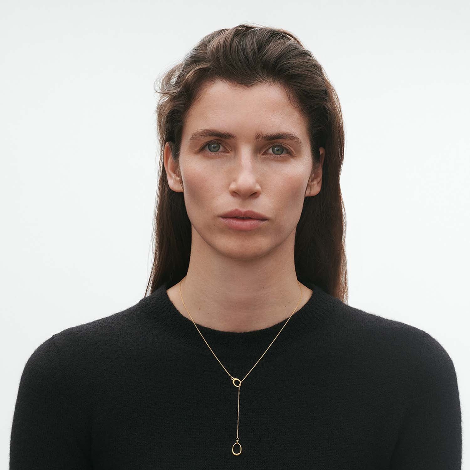 Oplev tidløs elegance med Georg Jensens Lariat Offspring halskæde i 18 kt. guld. Denne halskæde er designet til at fremhæve din naturlige skønhed og tilføje et strejf af luksus til enhver lejlighed. Med sit enkle, men sofistikerede design, er den perfekt til både hverdag og fest.