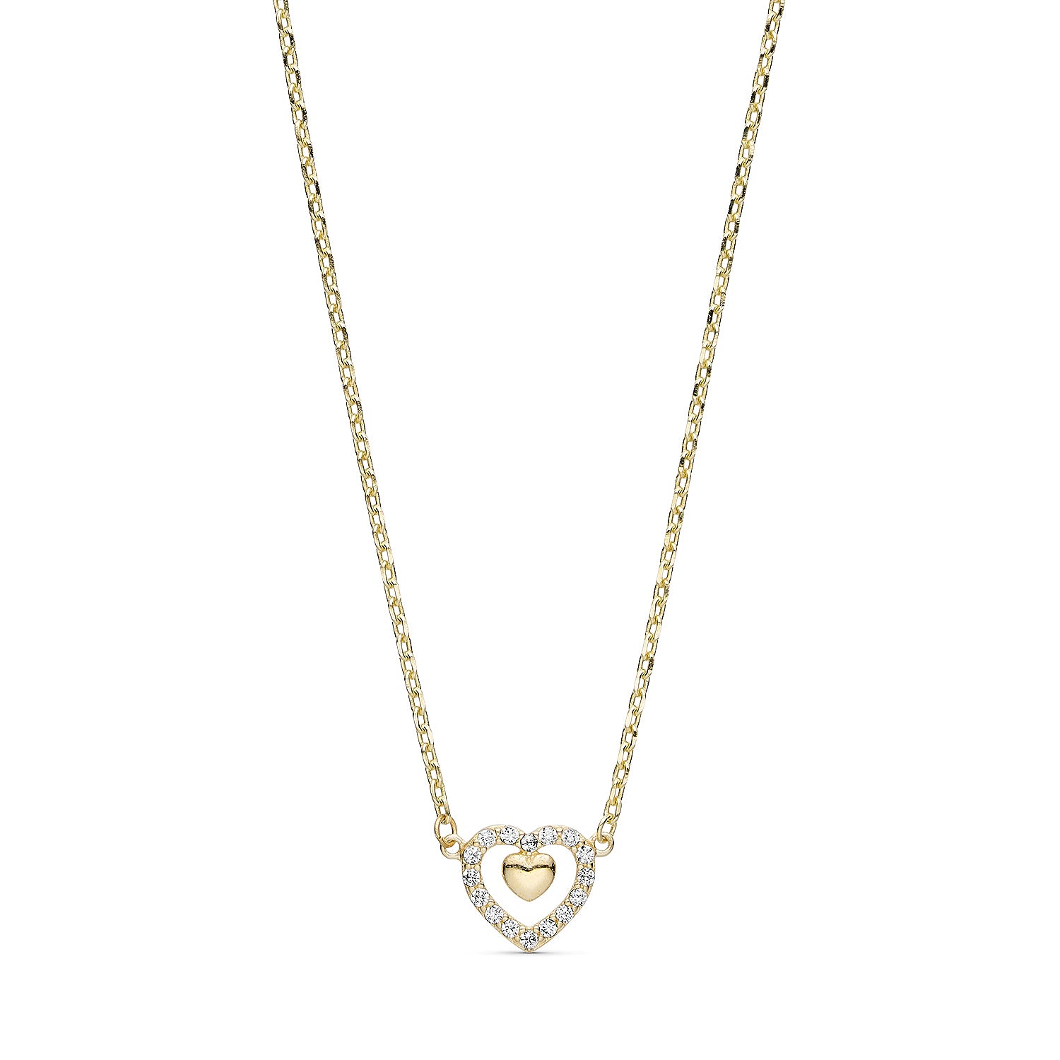 Vibholm GULD - Halskæde m. dobbelthjerte, zirkonia/45+3 cm - 8 kt. guld