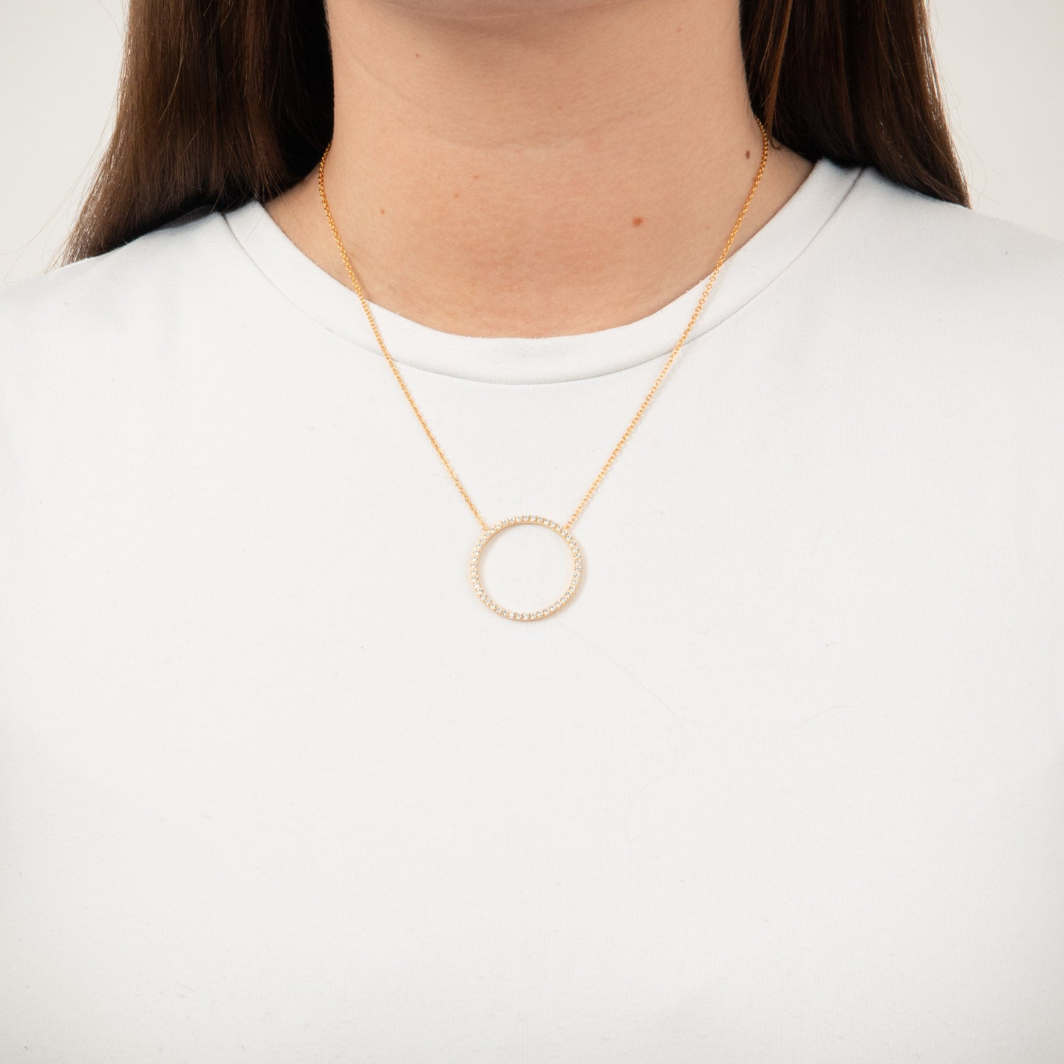 View Jewellery - Grande Circle halskæde m. zirkonia, 42+3 cm - Forgyldt sølv