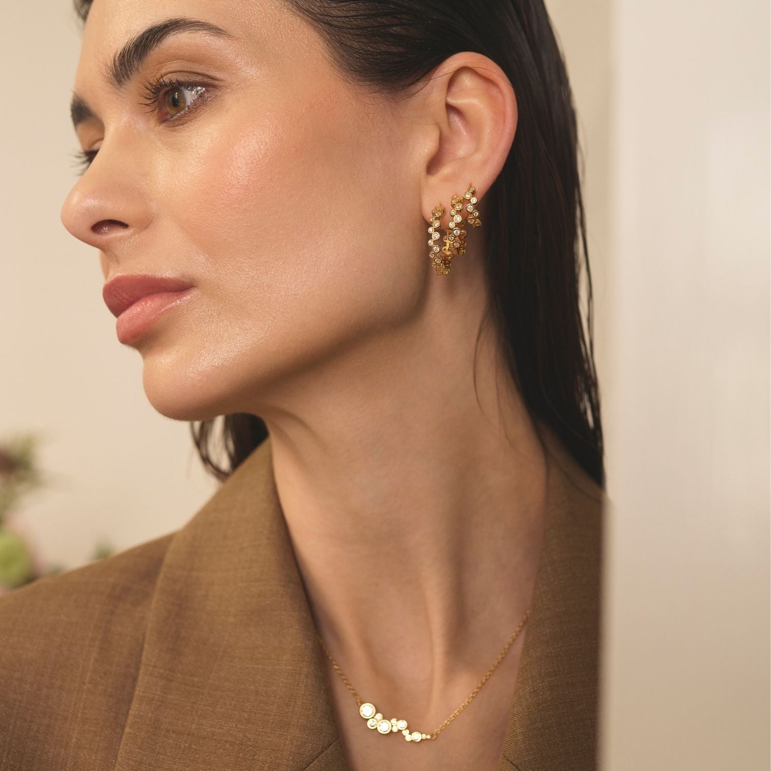 View Jewellery - Theodora Medio creoler m. zirkonia, 20 mm - Forgyldt sølv