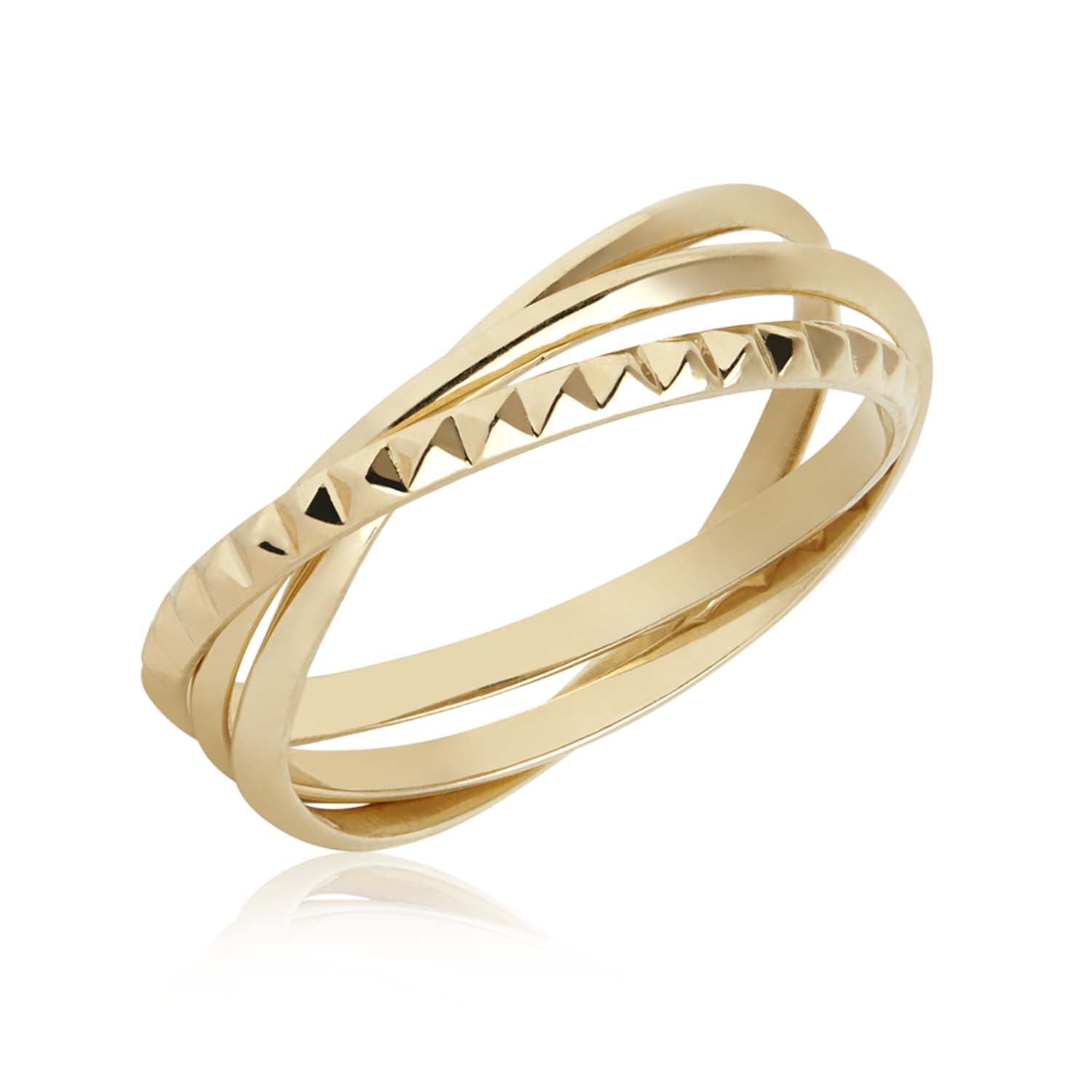 Aveny COLLECTION - 3 i 1 ring, glat/pyramide spids - 8 kt. guld