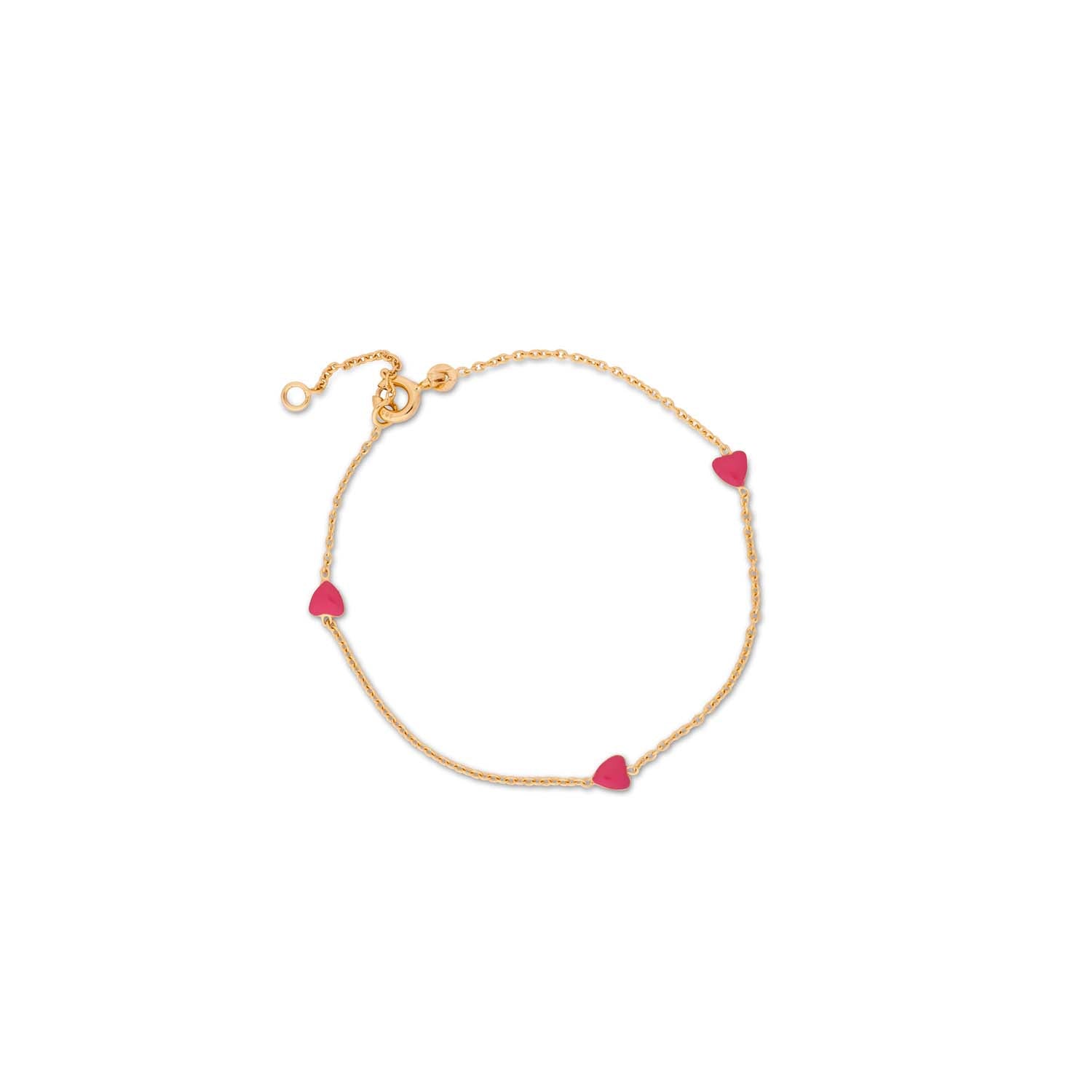 Aveny COLLECTION - Børnearmbånd m. 3 hjerter, lyserød emalje/14-16 cm - 14 kt. guld