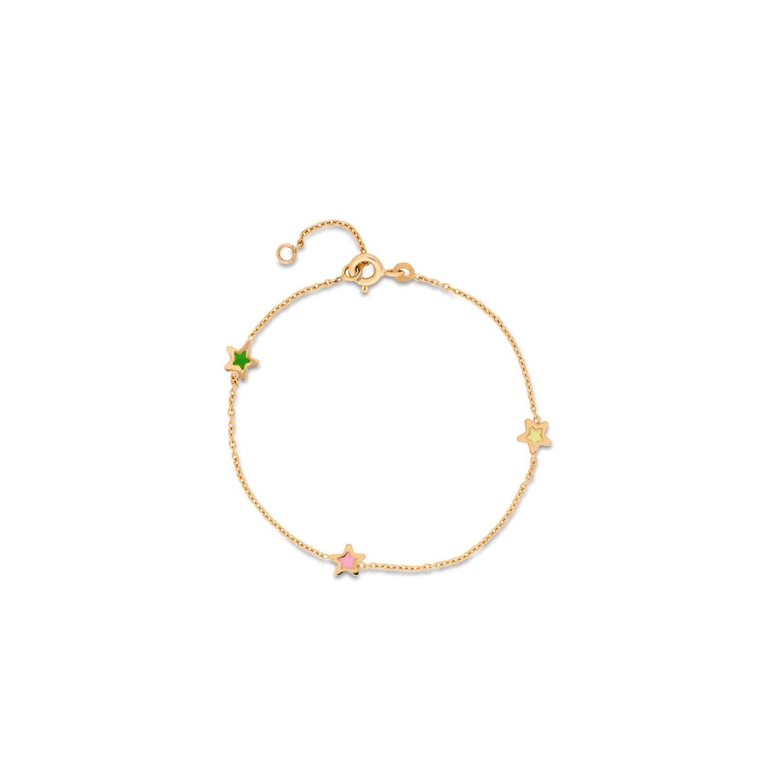 Aveny COLLECTION - Børnearmbånd m. 3 stjerner, multi emalje/14-16 cm - 14 kt. guld