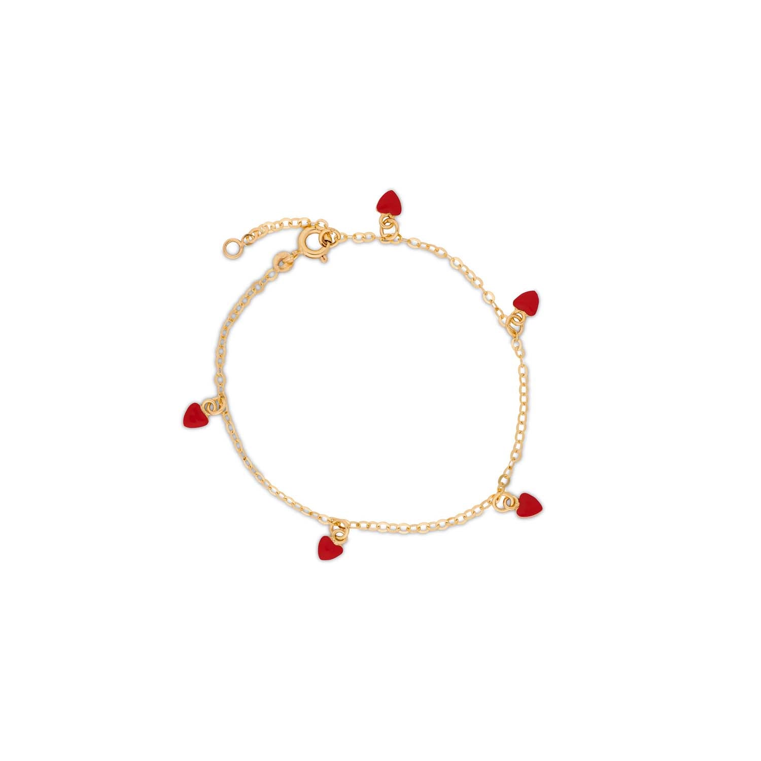 Aveny COLLECTION - Børnearmbånd m. 5 hjerter, rød emalje,14-16 cm - 14 kt. guld