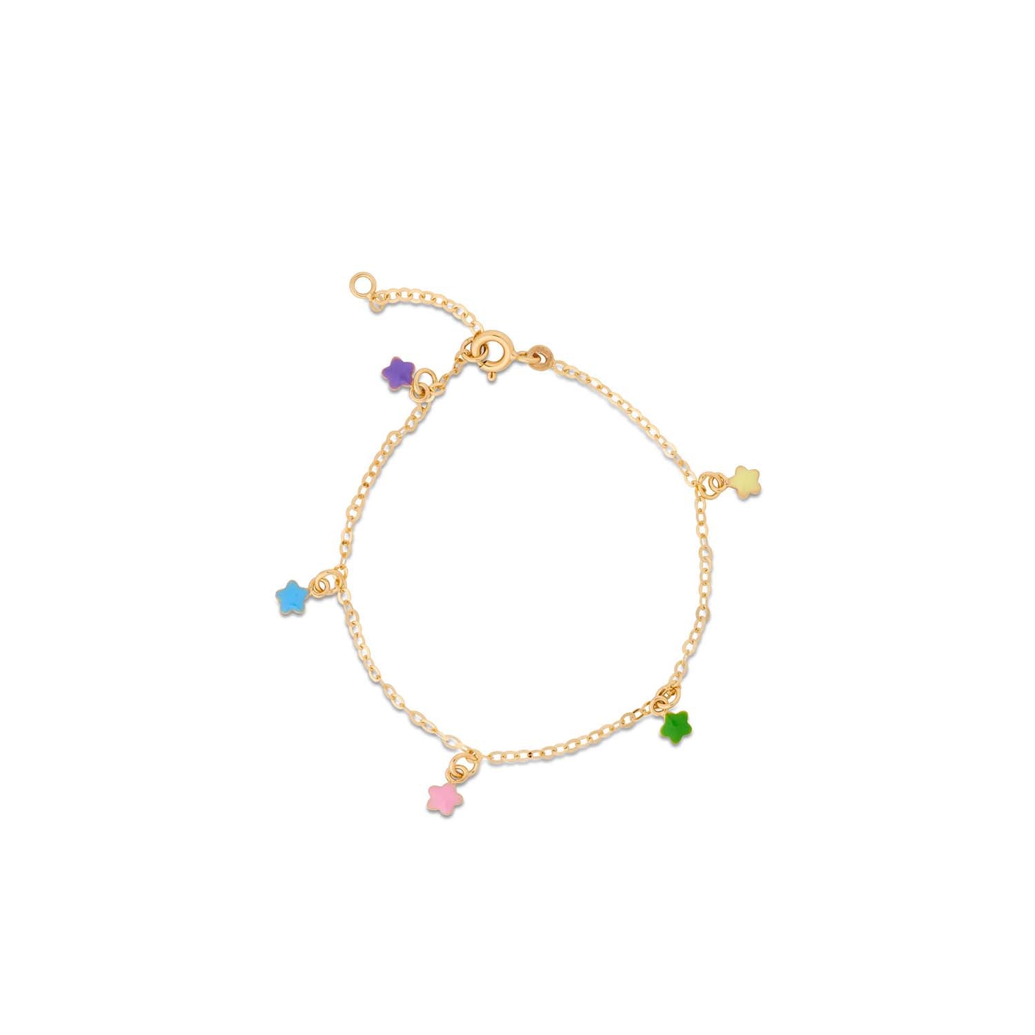 Aveny COLLECTION - Børnearmbånd m. 5 stjerner, multi emalje/14-16 cm - 14 kt. guld