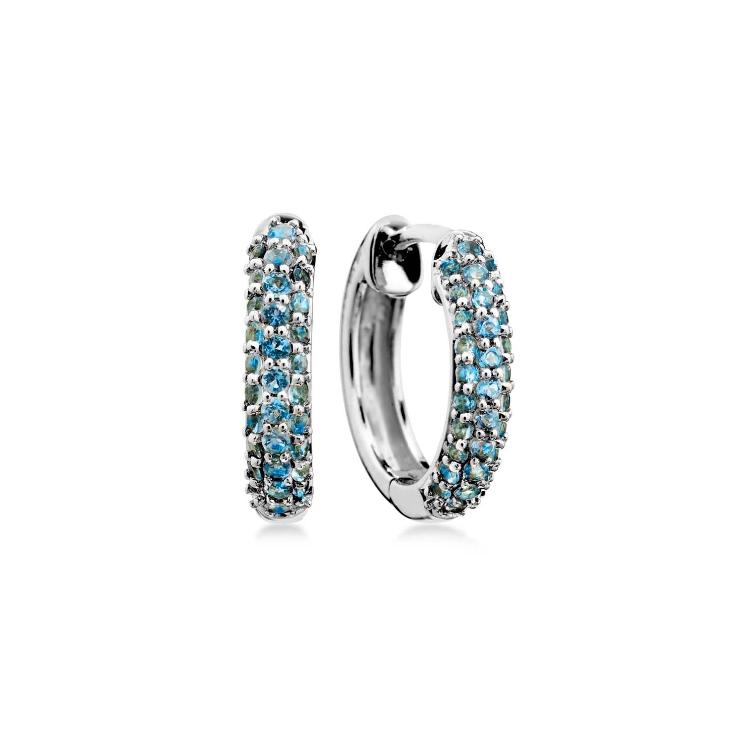 Aveny COLLECTION - Creoler m 3 rækker, Ø14 mm/62 topaser, 14 kt. hvidguld