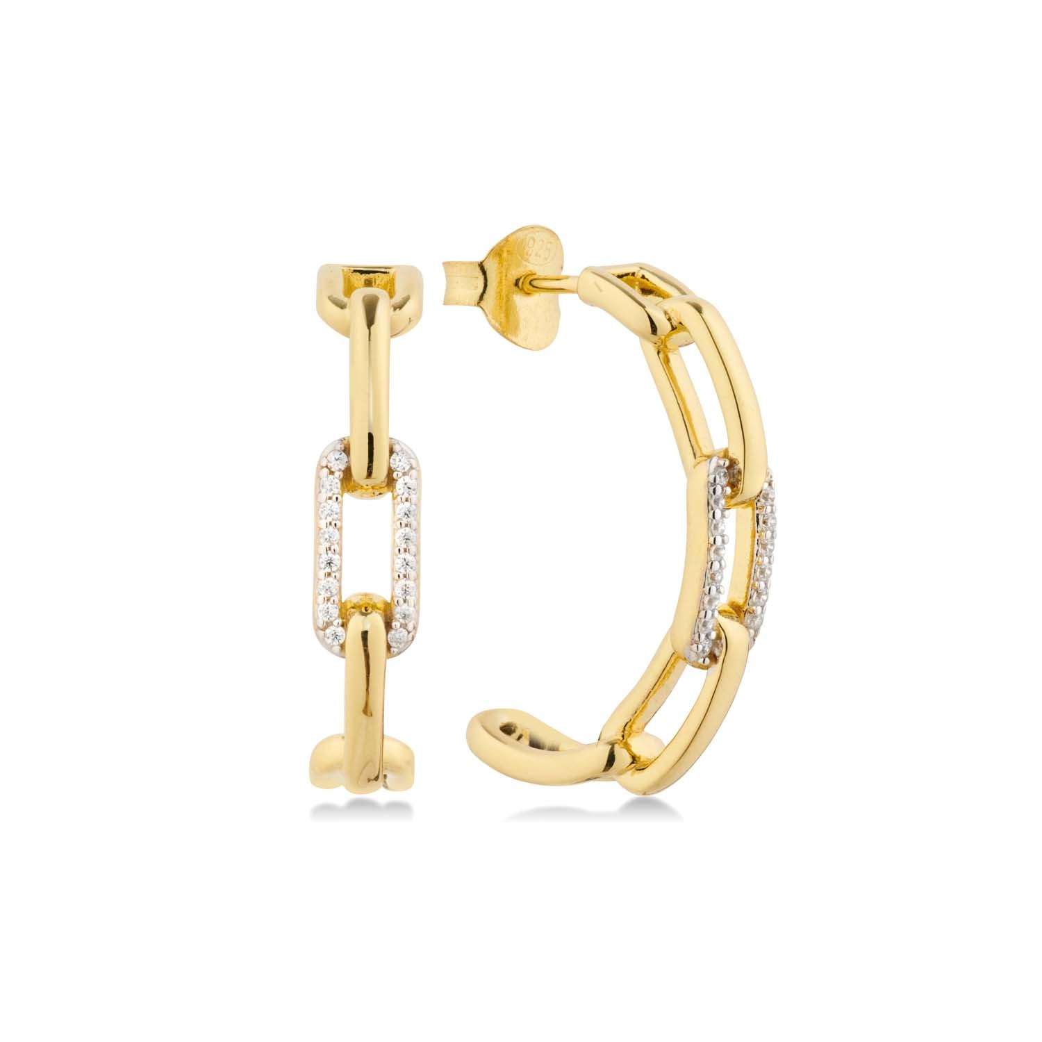 Aveny COLLECTION - Halvcreoler, paperclips m. zirkonia, Ø24 - Forgyldt sølv