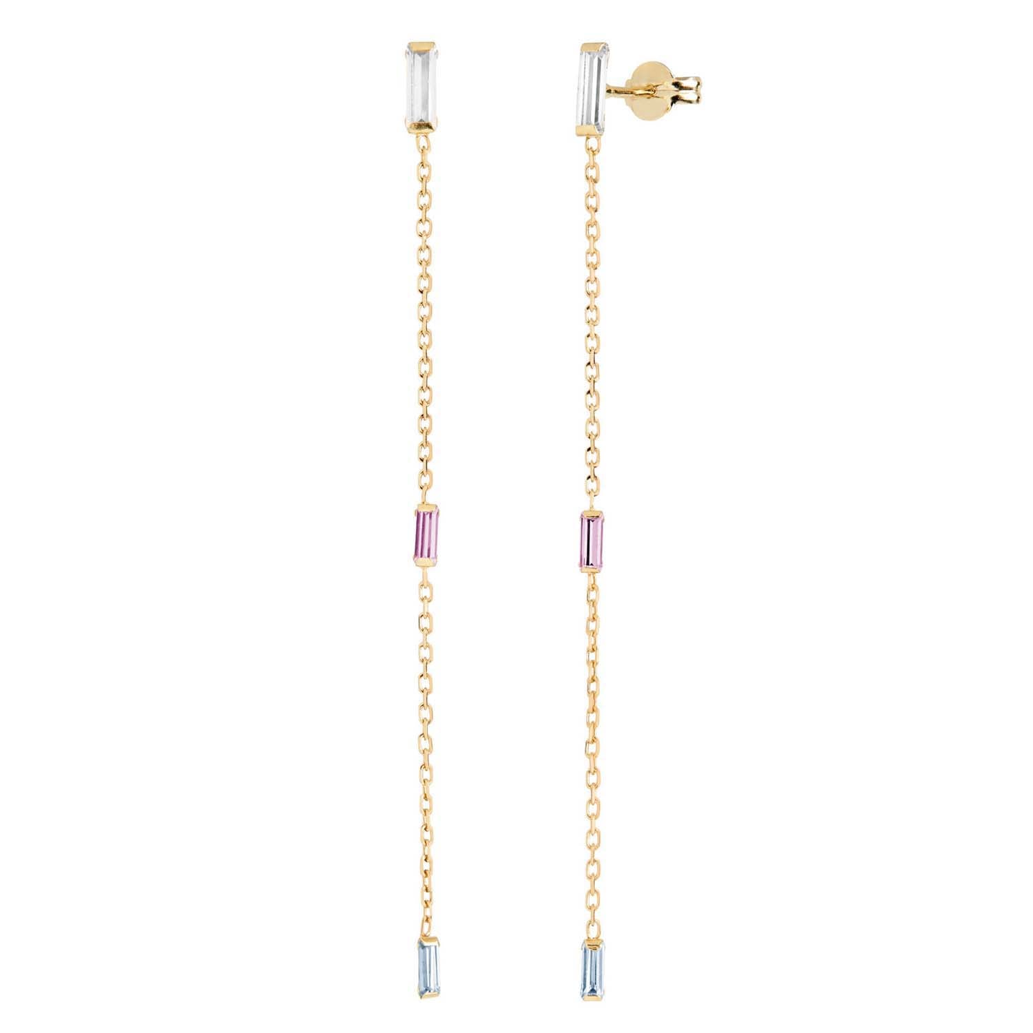 Aveny COLLECTION - Ørekæde, farvet zirkonia baquette - 9 kt. guld