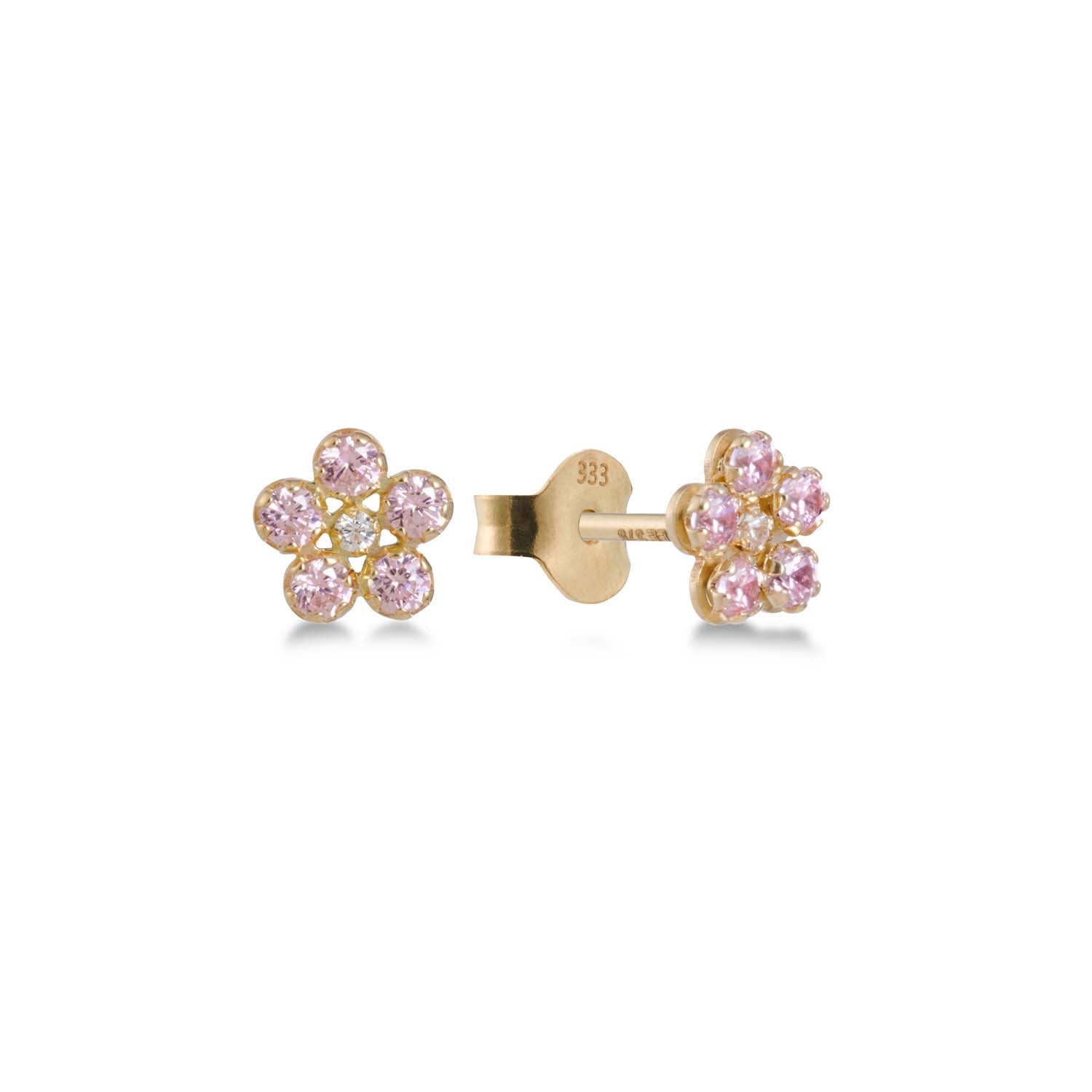 Aveny COLLECTION - Ørestikker m. blomst, lyserød zirkonia - 9 kt. guld