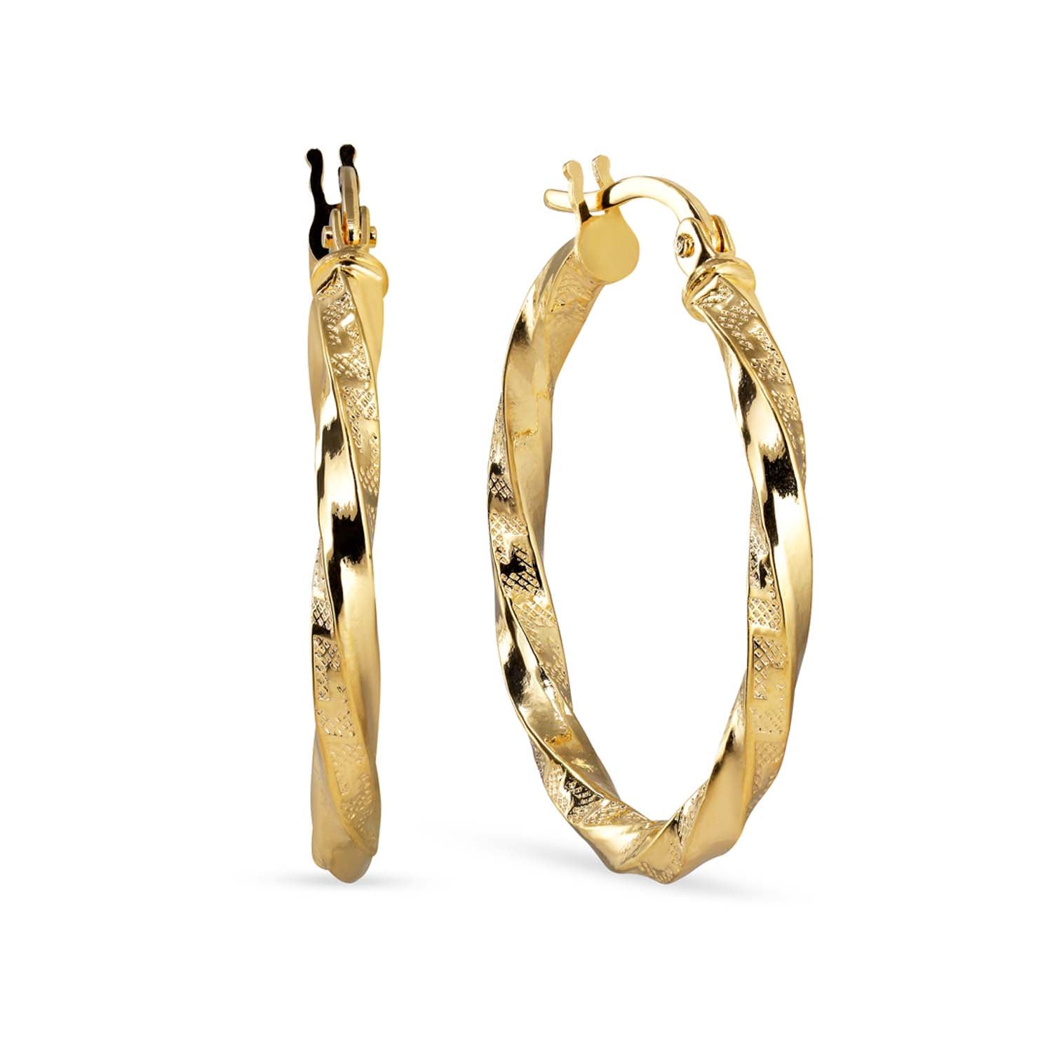 Aveny COLLECTION - Snoet creoler m. mønster, Ø24 mm - 14 kt. guld