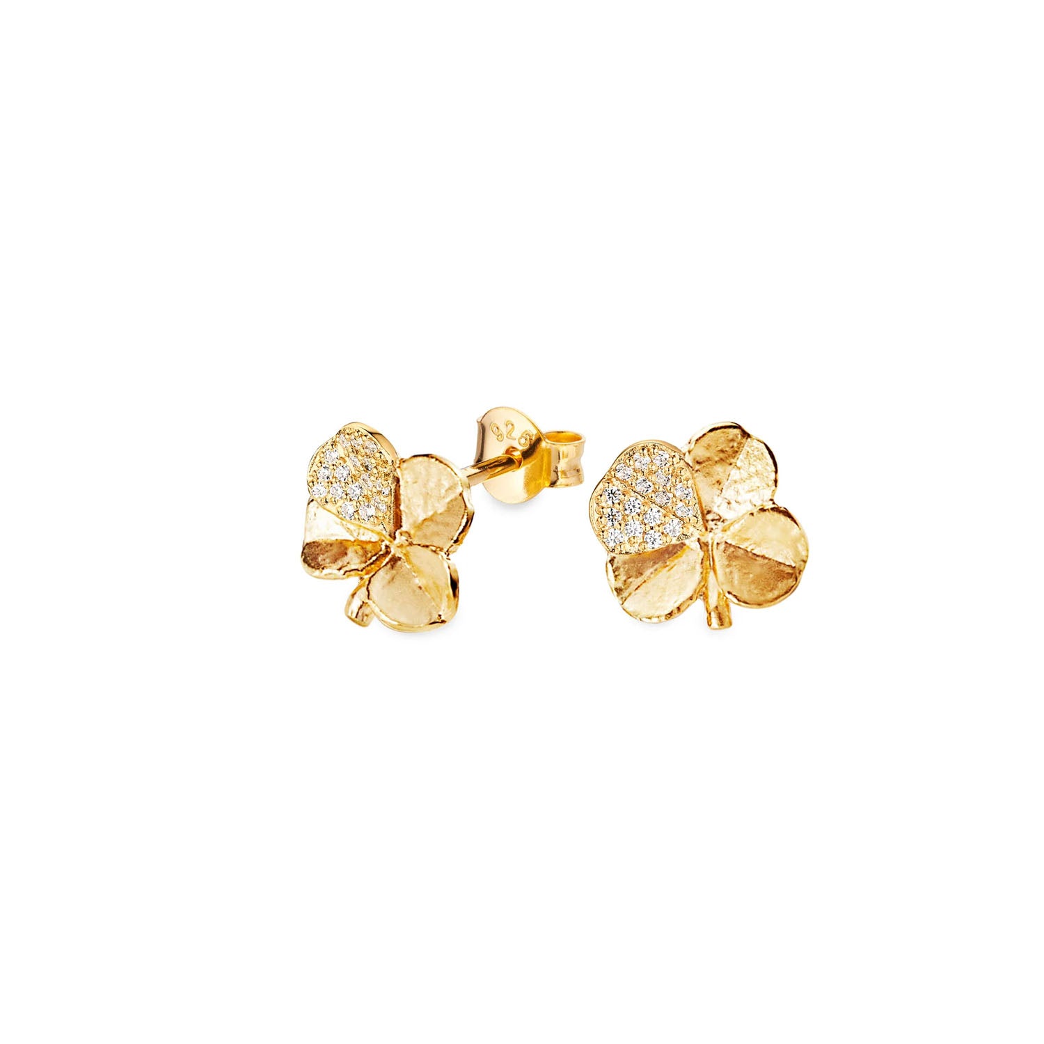 Flora Danica - Firkløver Pavé ørestikker - FLC-STPC-G-PAVE