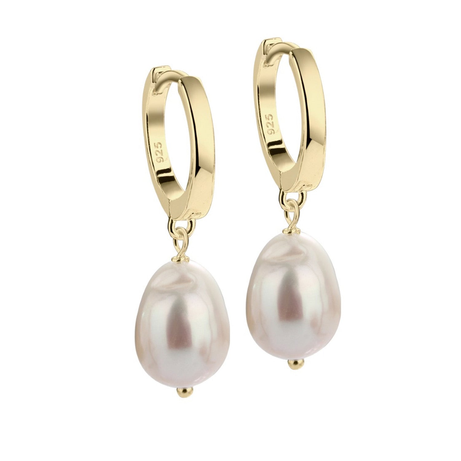 Aqua Dulce - Maren Pearl hoops small - Forgyldt sølv