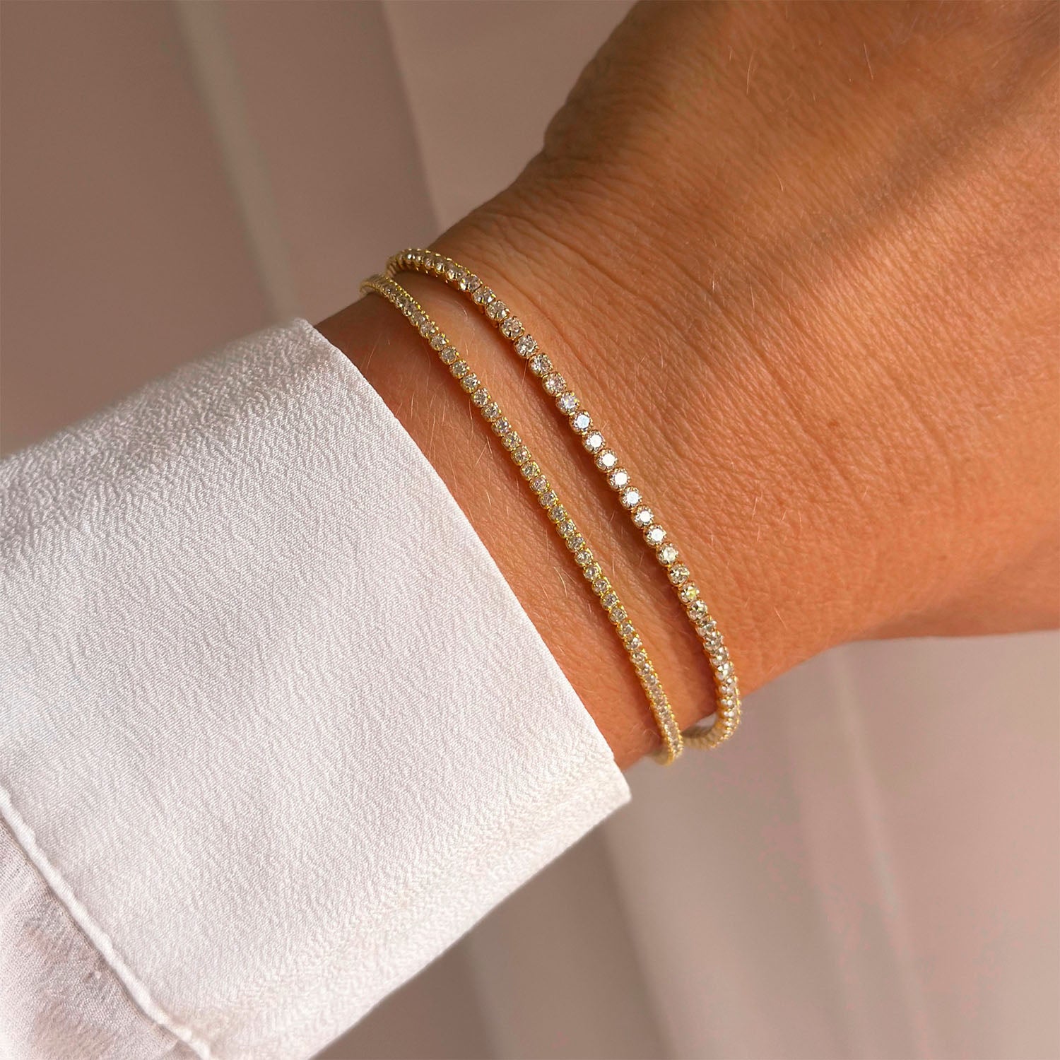 Aqua Dulce - Tennisarmbånd small, 17+3 cm - Forgyldt sølv