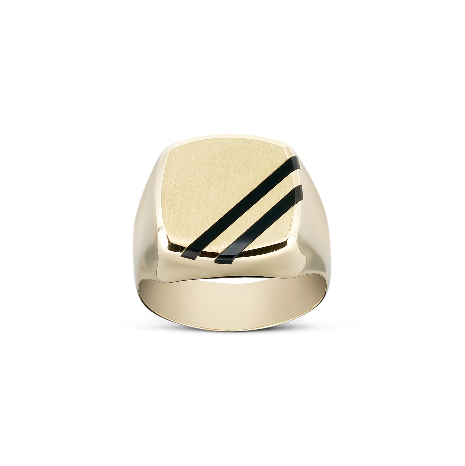 Vibholm GULD - Herrering m. plade, sort emalje - 8 kt. guld
