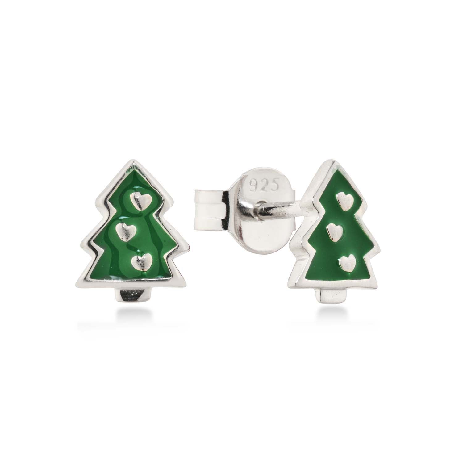 Aveny COLLECTION - Børneørestikker m. juletræ, emalje - Rhodineret sølv