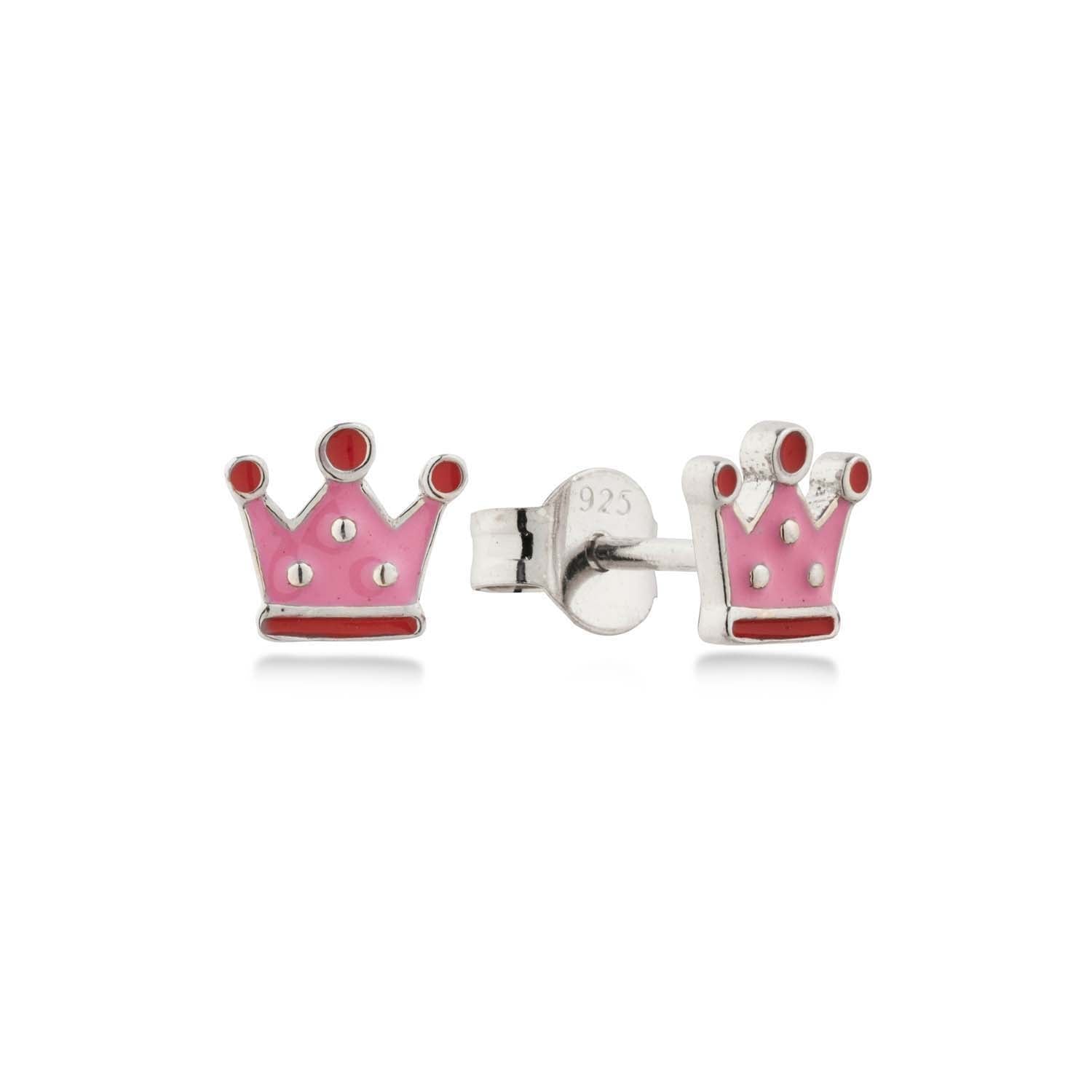 Aveny COLLECTION - Børneørestikker m. krone, emalje - Rhodineret sølv