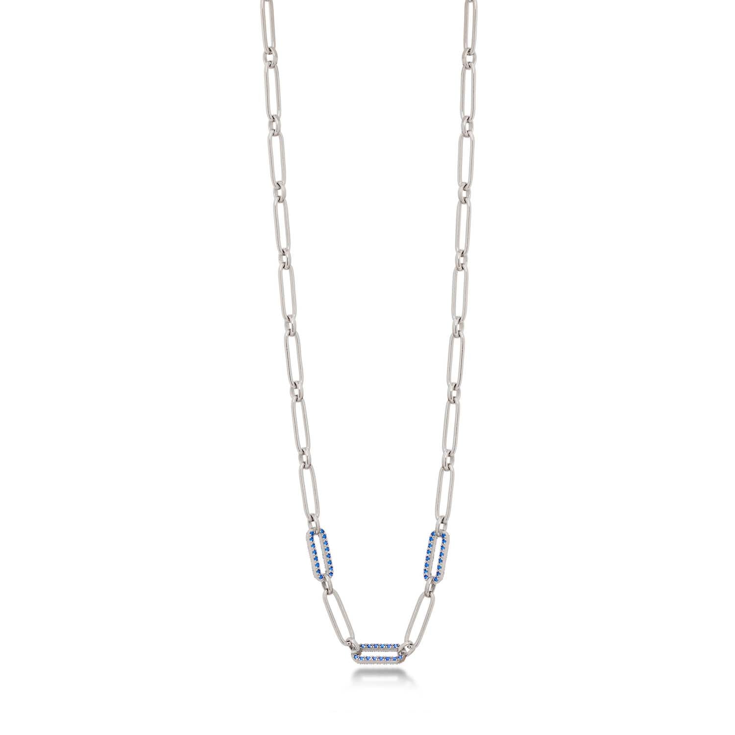 Aveny COLLECTION - Collier paperclips, blå zirkonia, 43 cm - Sølv