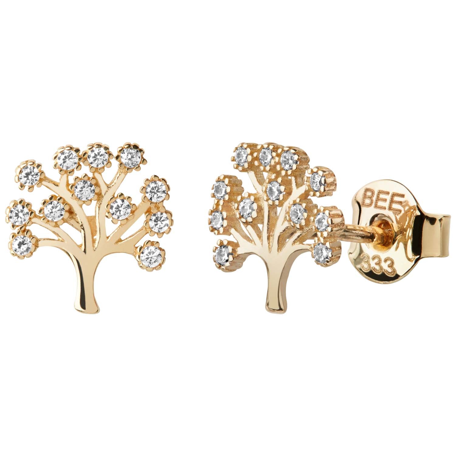 Aveny COLLECTION - Ørestikker, livets træ m. zirkonia - 8 kt. guld
