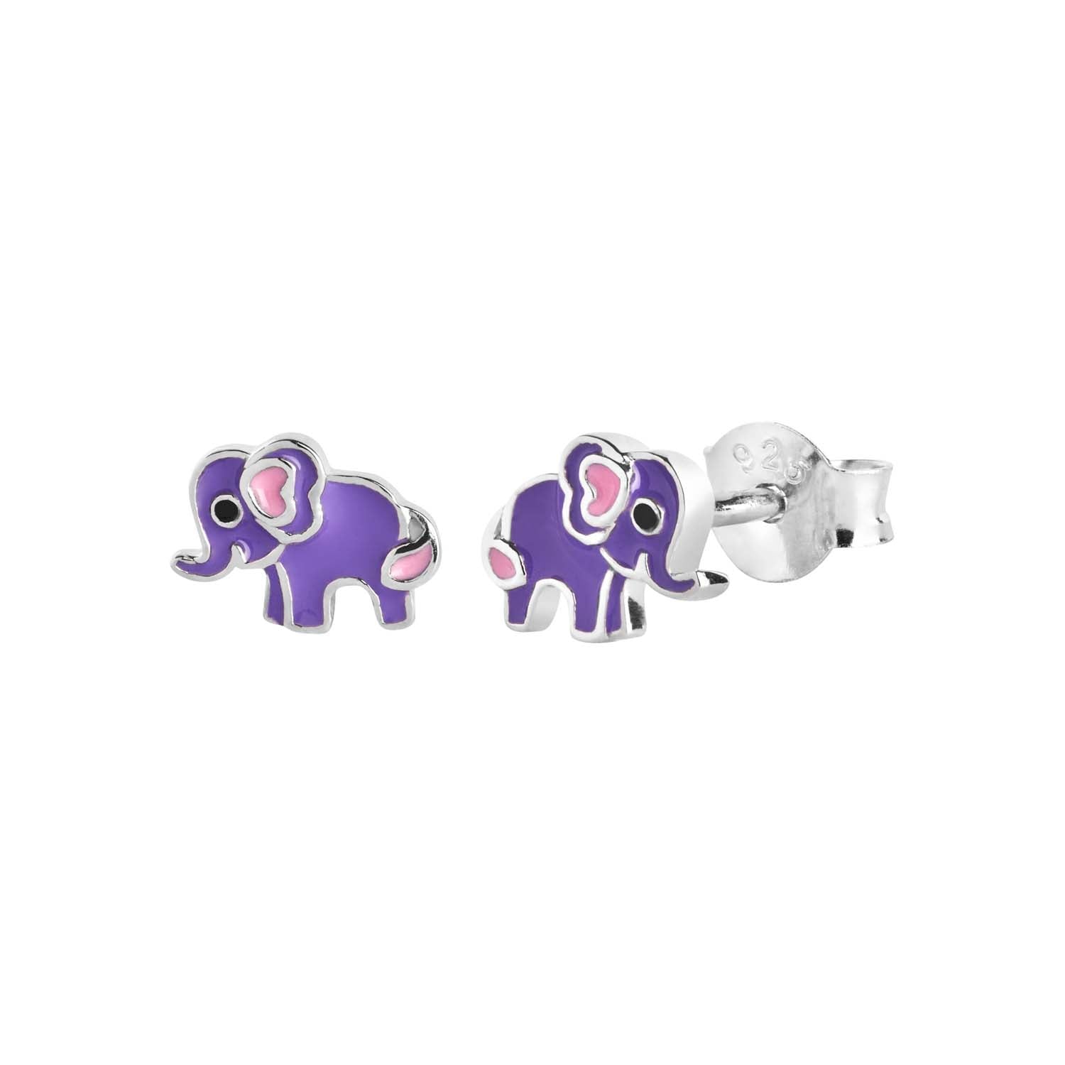 Aveny COLLECTION - Ørestikker m. elefant, lilla emalje - Sølv