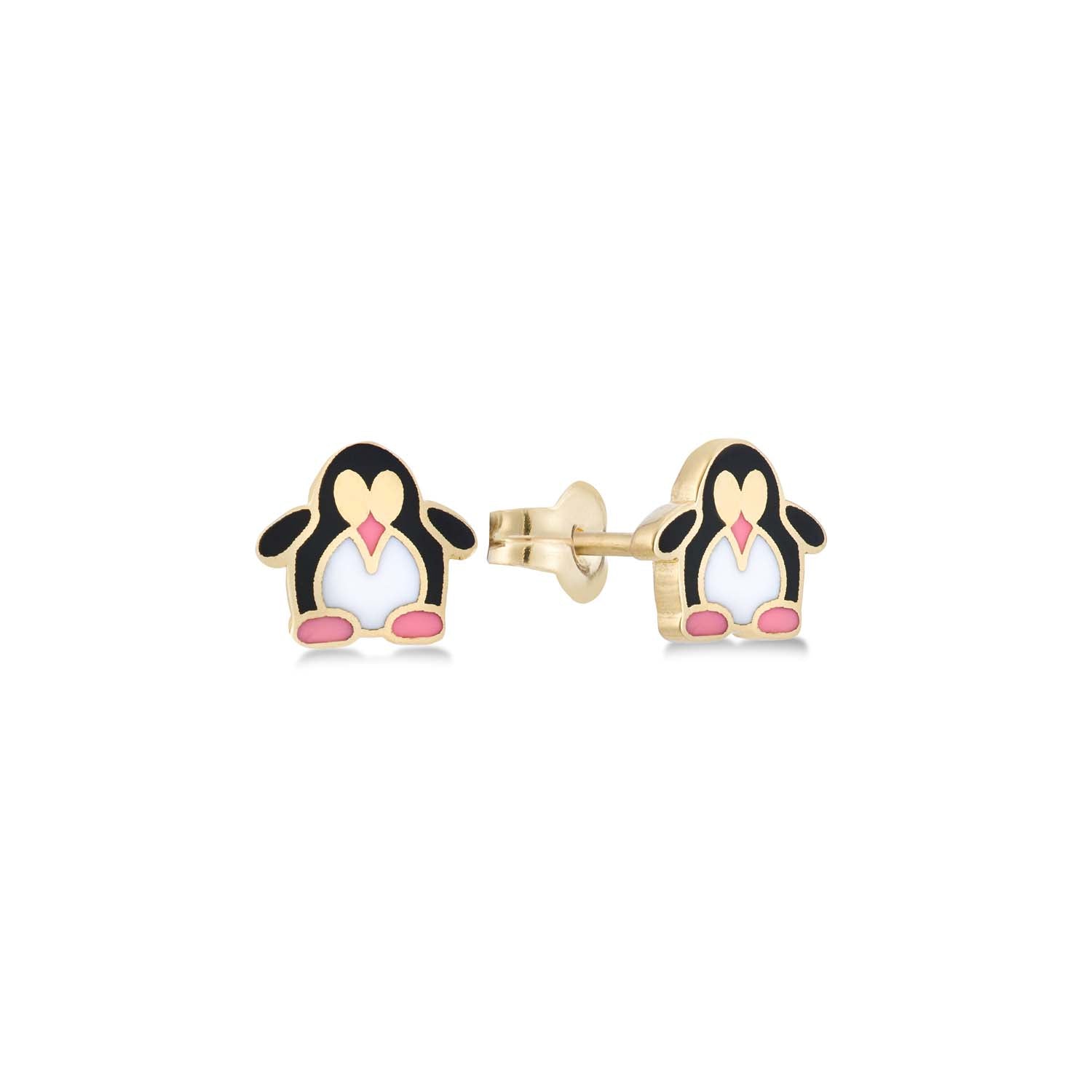 Aveny COLLECTION - Ørestikker, pingvin m. emalje - 8 kt. guld